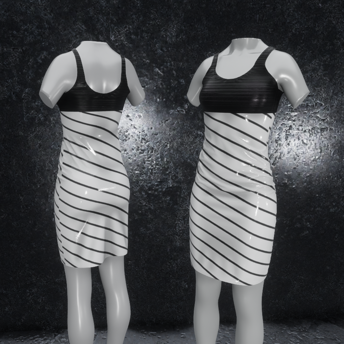 Modern dress made of high quality latex with metallic top readdy for avatar 2.0. Please don´t forget the ratings ;) Feel free to simulate the clothes before wearing it to adjust it optimally. Visit my store inworld: https://atlas.sansar.com/experiences/randdy/rr-fashion-shop