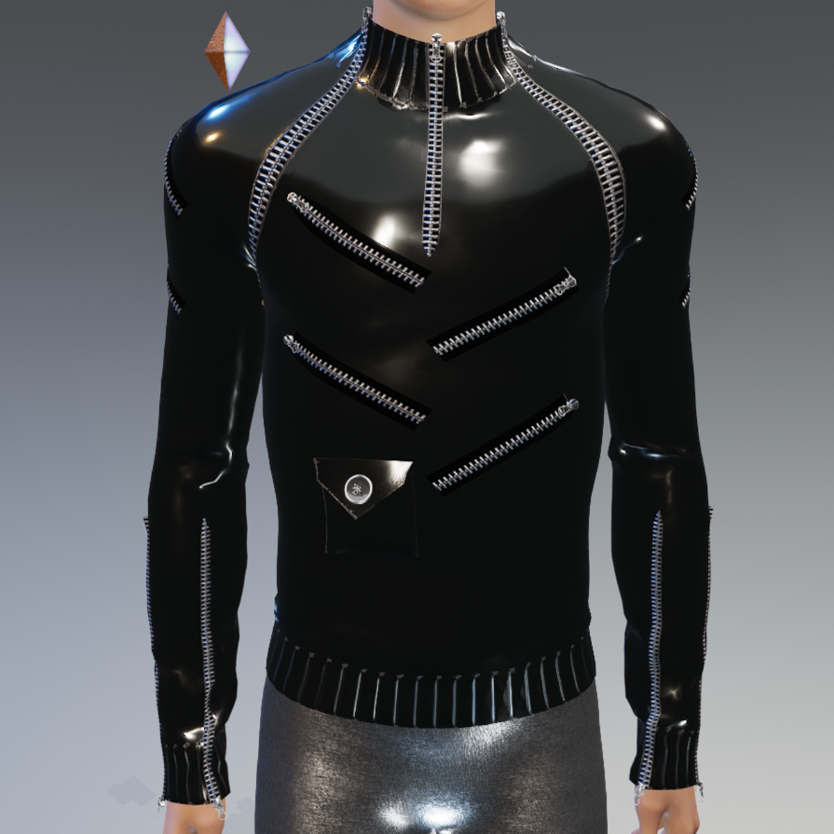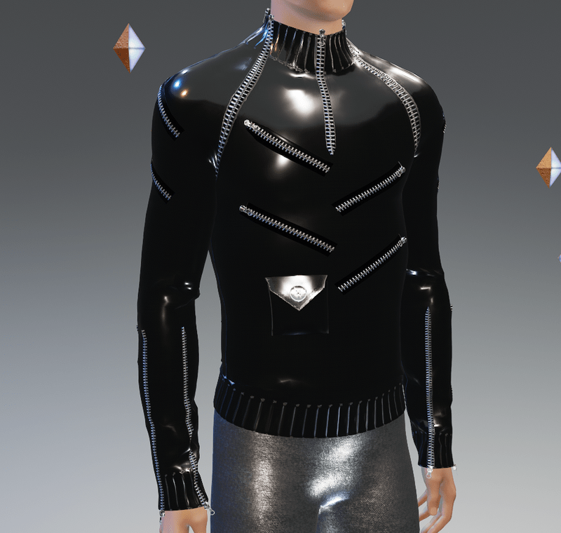 ***ORIGINAL DESIGN*** Out with the old and traditional! In with the future with this cool to the max Moda-Futuro Space-Age 19 Zippers Gun-Metal-Gray Sweater. The 19 zippers are functional. It has 3 zippers at the cuffs, front, back and middle in each sleeve for ultimate coolness! It shows Black inside the "Lookbook" but it's Gray. Enjoy and have fun! :)