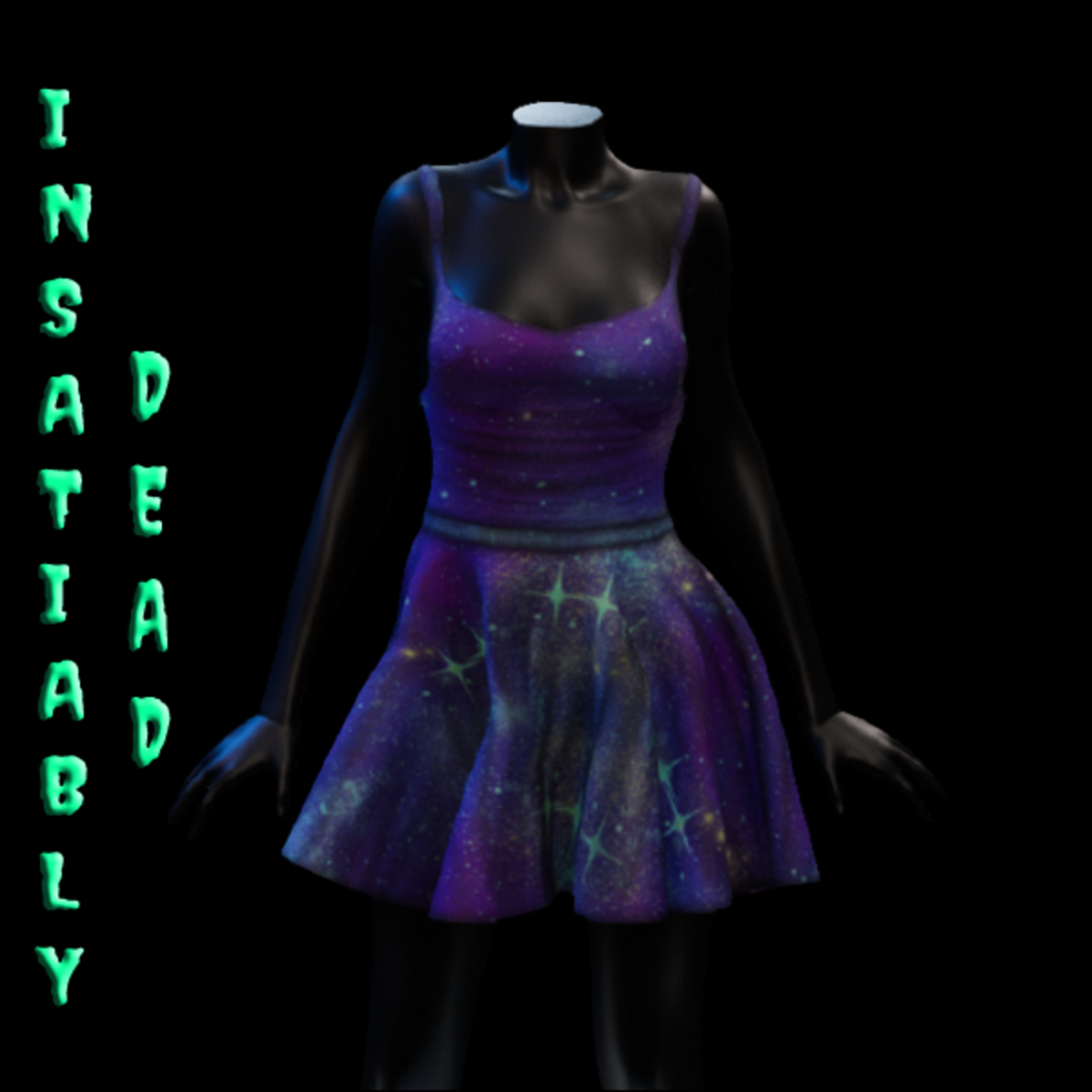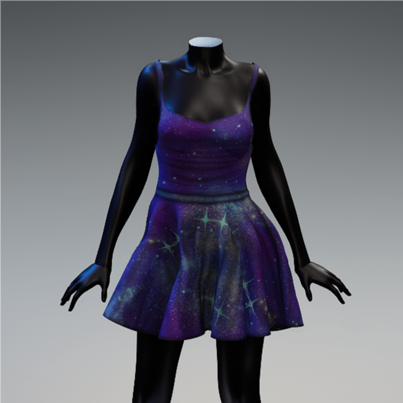 Tank dress in a galaxy pattern. Created in Marvelous Designer with Avatar 2.0. Adjustment may be required!! PLEASE DON'T FORGET TO RATE AFTER YOU BUY! THANK YOU :)! https://help.sansar.com/hc/en-us/articles/115005693363-Fitting-Marvelous-Designer-clothing-to-your-avatar