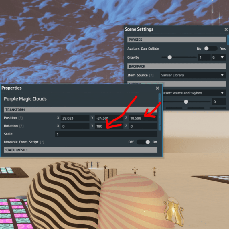 Great Effect for a Magic Sky with Green Clouds. Place it on the ground and open properties and then change Y: 180 and move the clouds about 18 meters up. You can adjust the size. Watch video here: https://gyazo.com/b634c02bed2a332471dc43aea3a9b180b0ddd Note:The effect depends on which background you use it with. Best effect is for examplea skybox with: Bright Clouds or Dessert Wasteland.