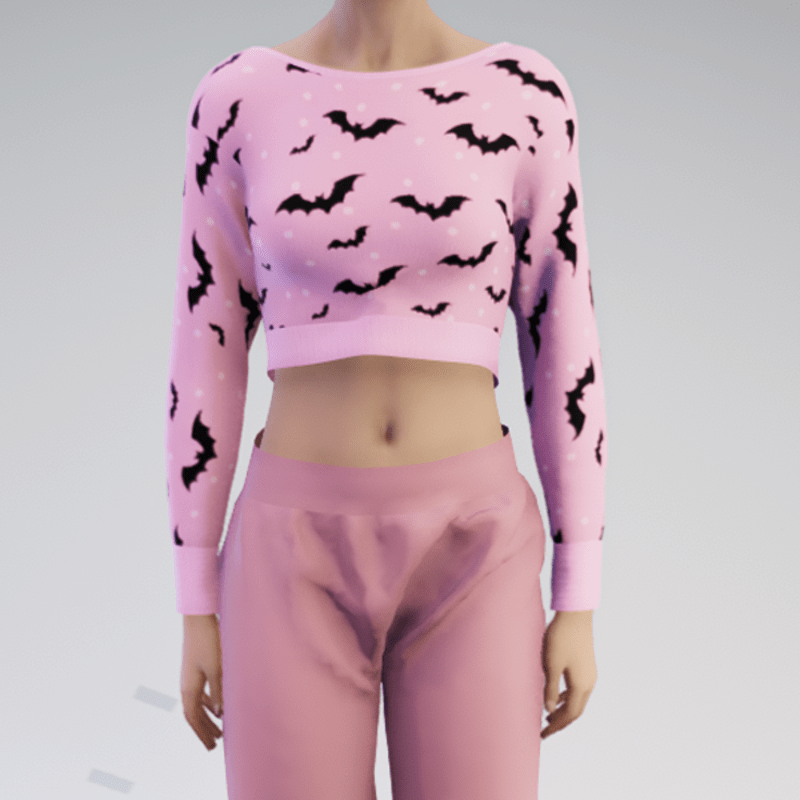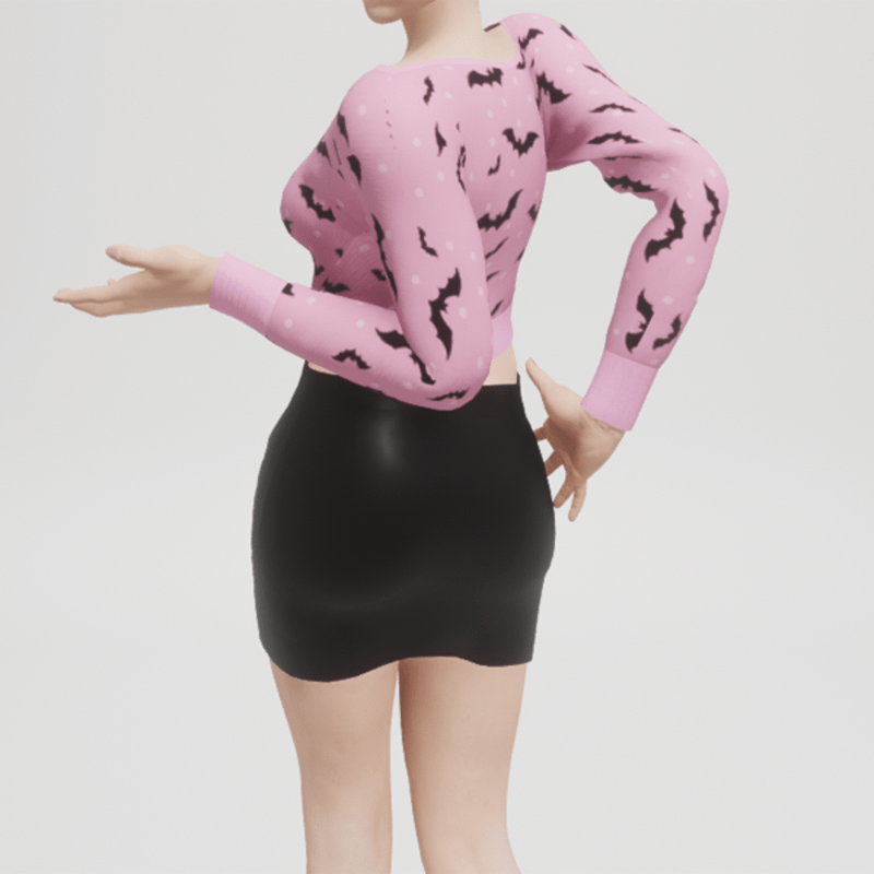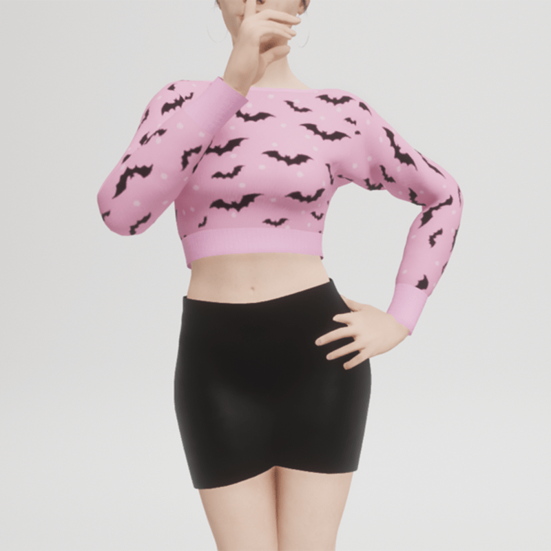 A cute pink pullover with white dots and black bats, which you can wear everyday, 'cause everyday is halloween! If you want the full outfit showing in the images, just get and use my "Lil' Black Skirt" for free. Enjoy! (Avatar 2.0: Still fits, you just have to pull it a little bit up. otherwise the pullover will be shoulderfree. the av2 look is showing in the last image.)