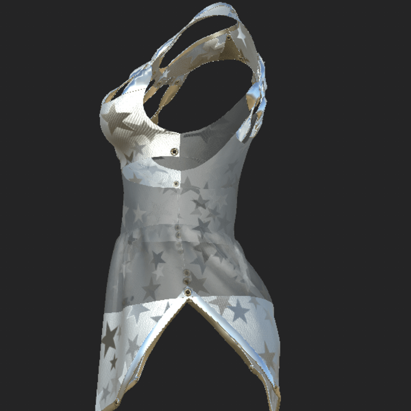 This garment is created in Marvelous designer so you can adjust it to look as you like. For any problem, or suggestion contact me. @ jamal-7001 Thank you *. All the clothes of my store are for the 2.0 avatar of Sansar, and have been tested and used in the custom avatar Alina of the Cora store too