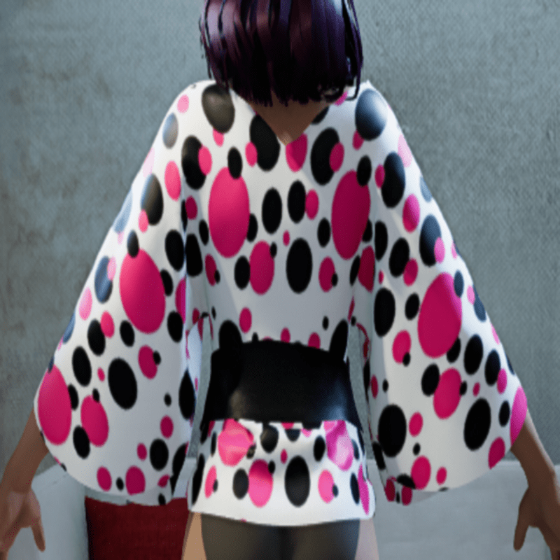 Black & Pink polka dot shirt with dramatic sleeves & belt