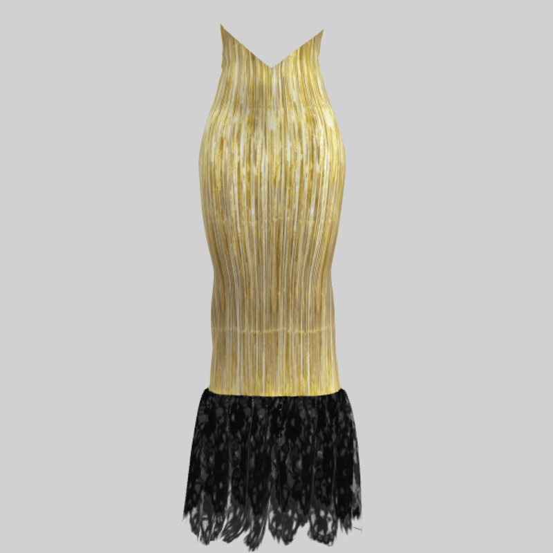 July is a gold evening skirt with a black lace trim.......wear it with your own top or look out for something in my shop to go with this.
