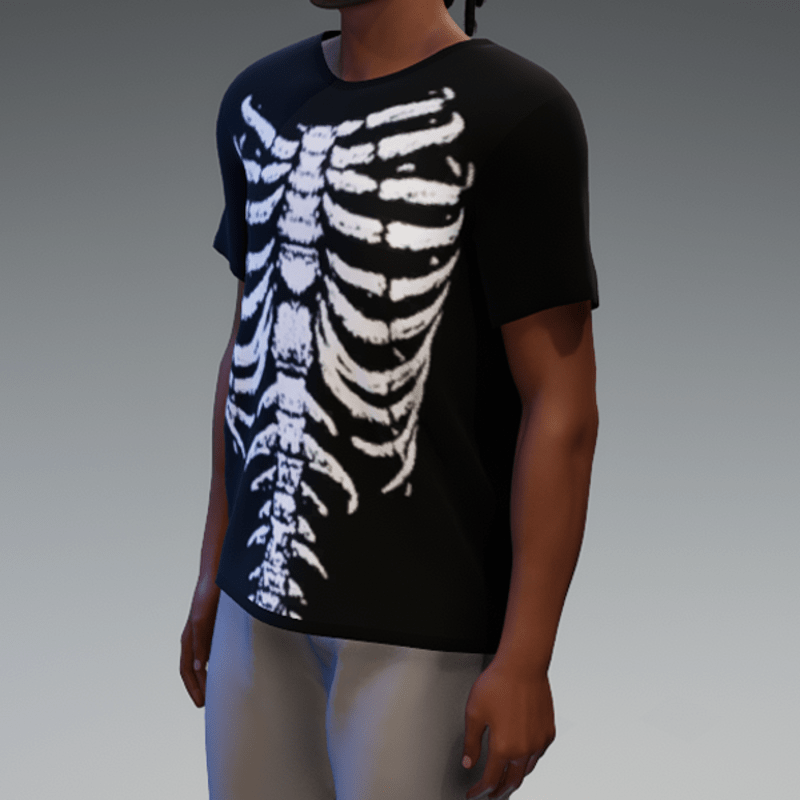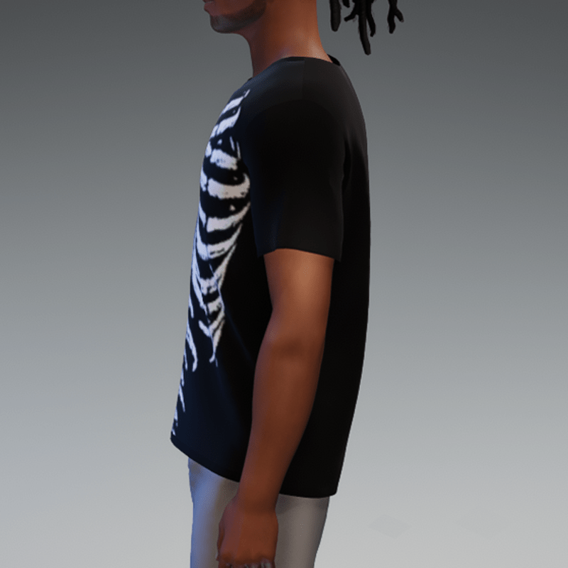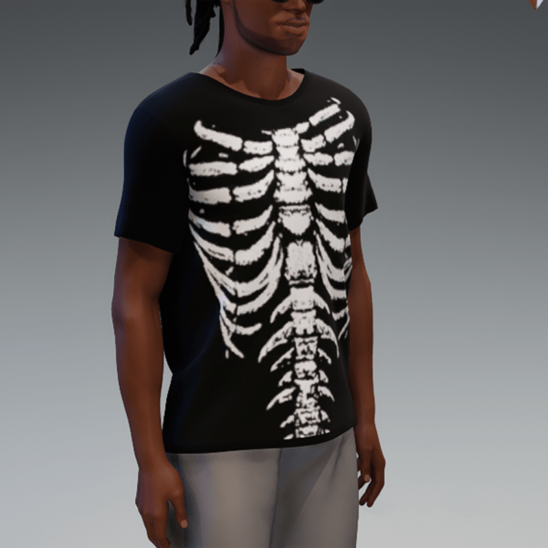 My black and white skeleton-print t-shirt for Men. If you're interested in the sweatpants showing in the pictures - you can find them in my store, too! Enjoy!