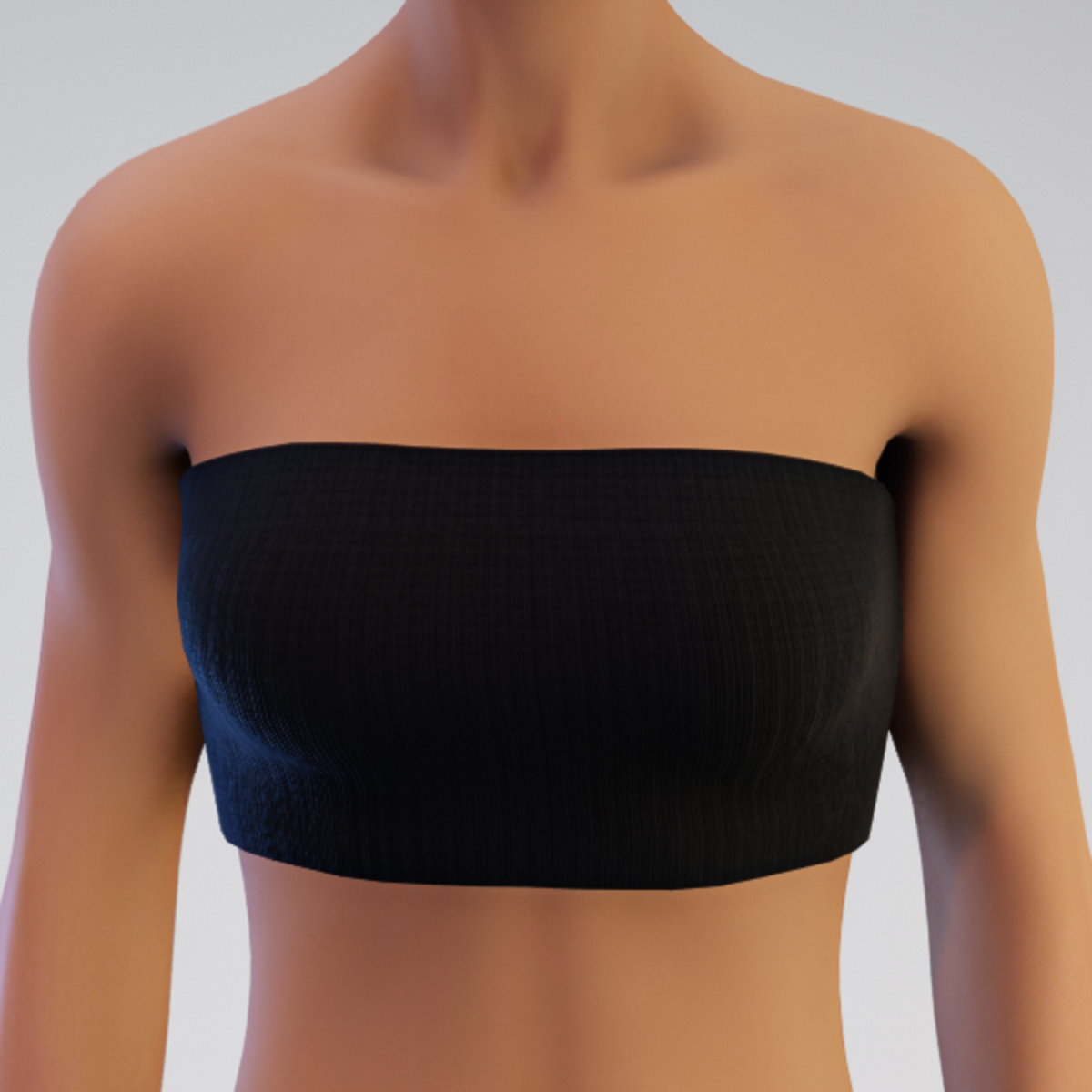 Simple knit tube top with 2 x 2 ribbing. Easy adjustment; just hit the button and you are done. Avatar 2.0. Works well under jackets and open tops. Try the DEMO.