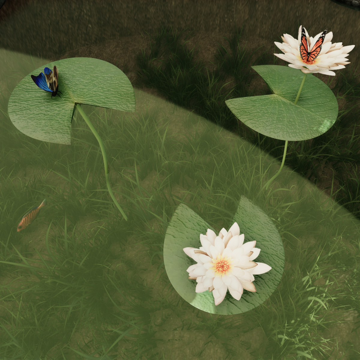 Water lilies for my pond on my store. Butterflies not included. Has collison and normal maps. Realistic looking. First time making lilypads. Water lilies are separated so you can move each one individually.