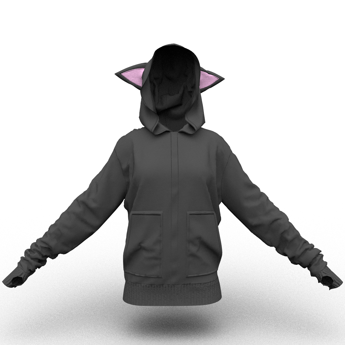 Cat Hoodie Black-Pink Short