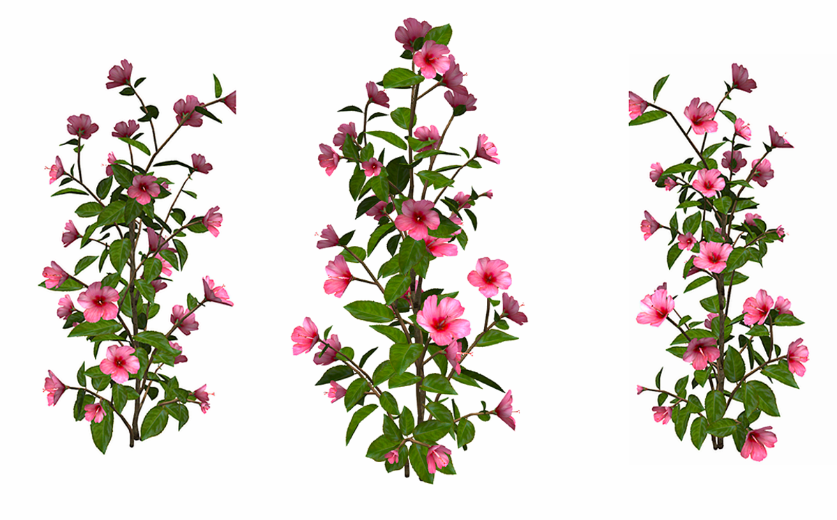 A tall hibiscus plant with bright pink flowers. Resize it to suit your needs. https://atlas.sansar.com/experiences/reidparkin/reid-s-plants
