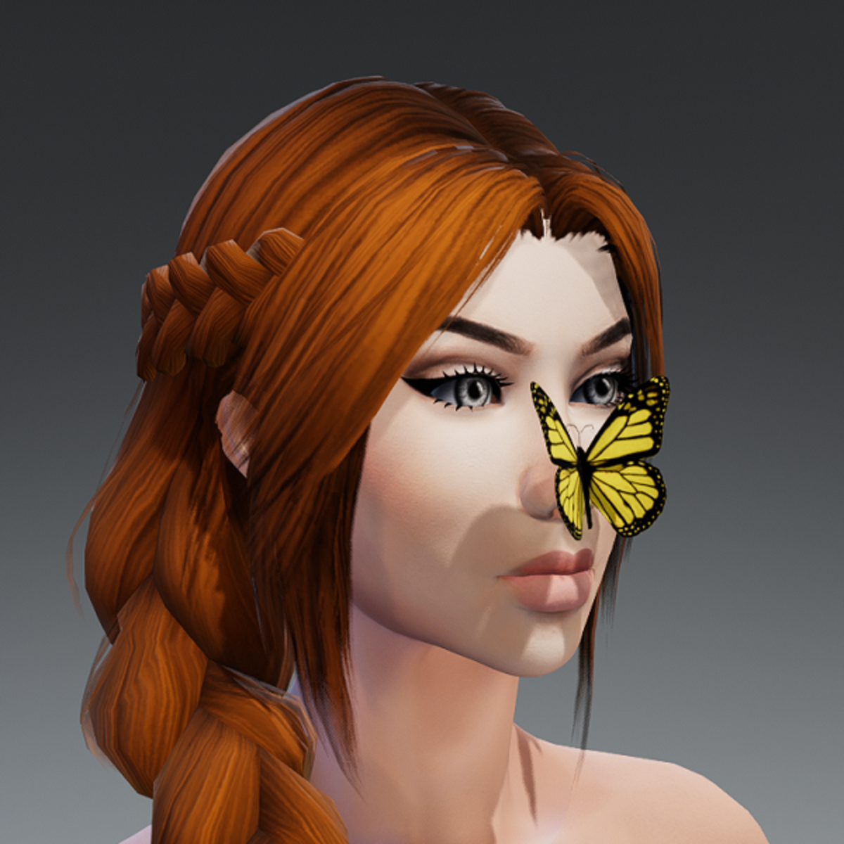 3D butterfly on nose. A little friend for your adventures.