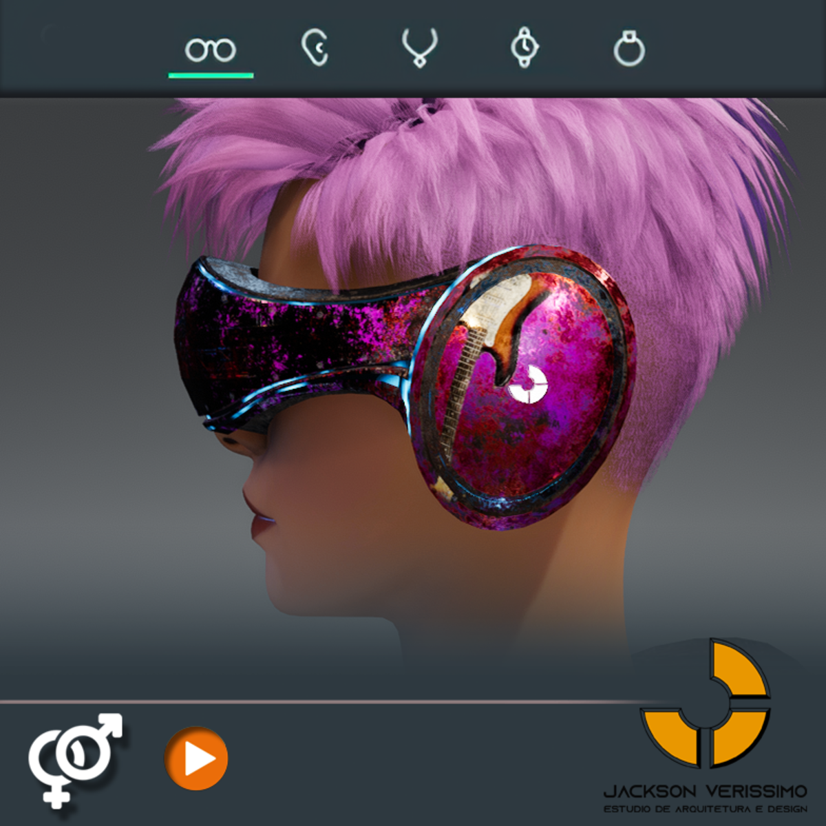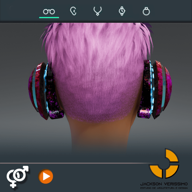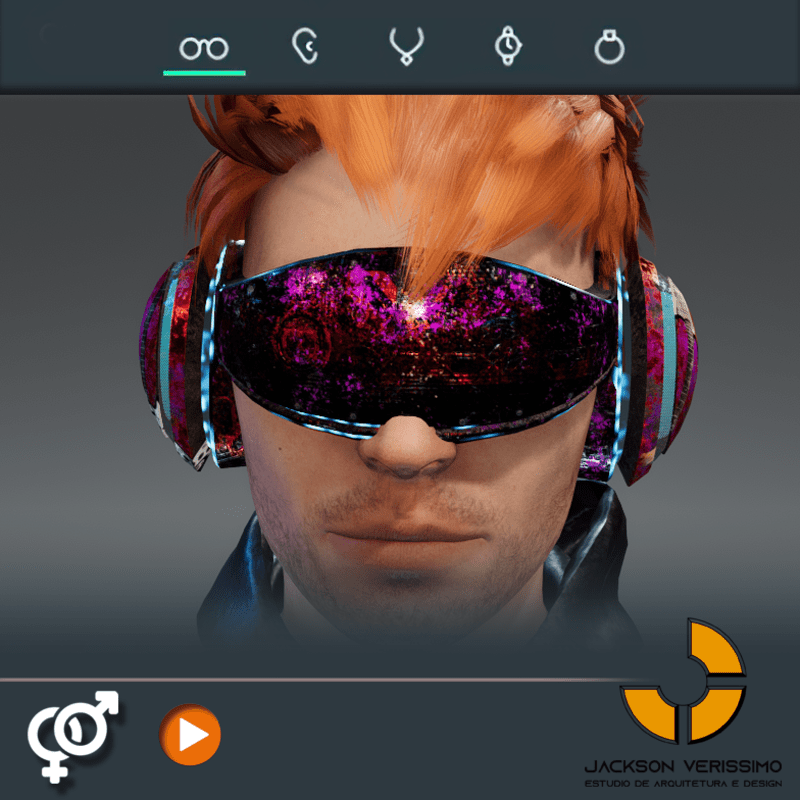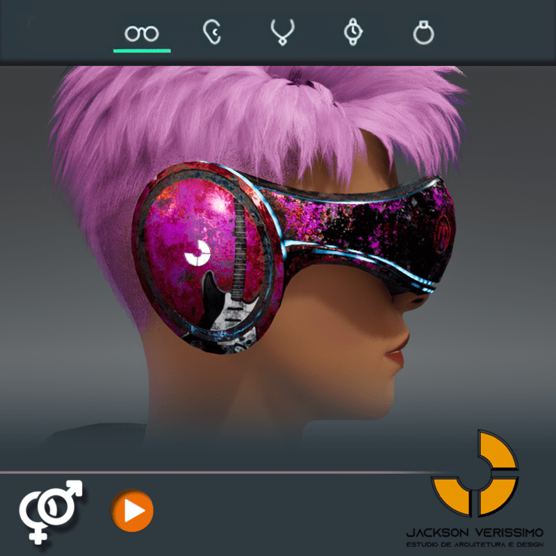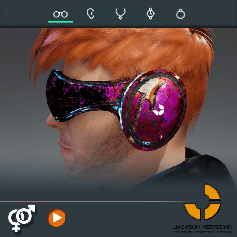 Visionary Design for a VR Headset exclusive for Sansar Metaverse. This Vr Glasses don't mess the Hair of your Avatar. Minimal and Elegant Design. Vr Glasses with HeadPhone. Chrome Texture. Animated Light Inside. Unisex. Match with all humanoids avatars. No need adjustments for Default 2.0 Avatar of Sansar.