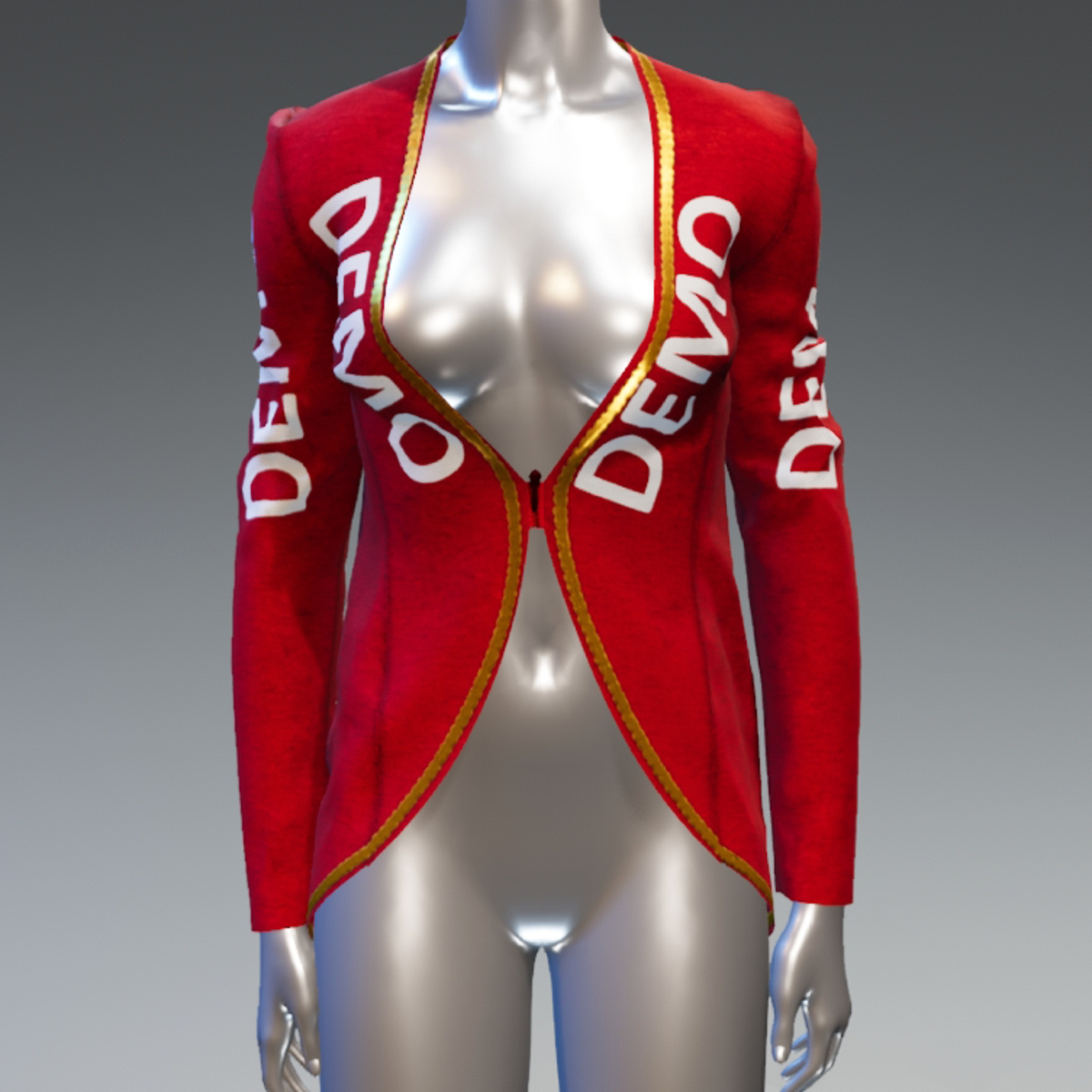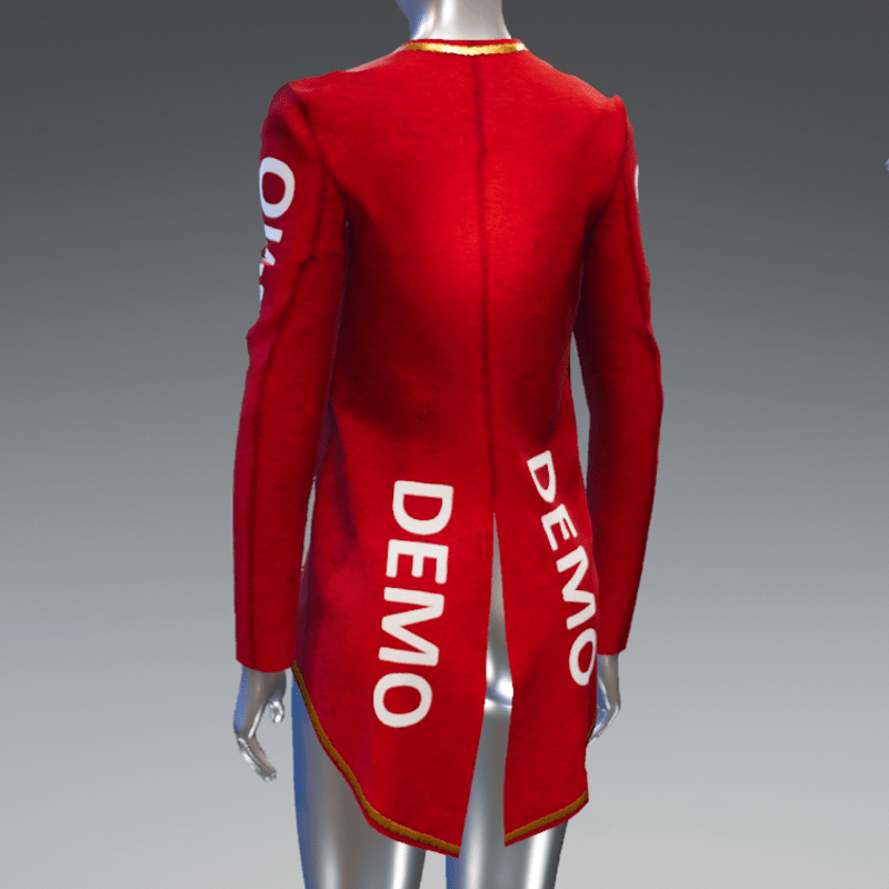 A blazer in red or green colour for elf or any other holiday costume. Long sleeved, fastens with a zipper that can be unfasten and decorated with a gold stripe. Free demo item