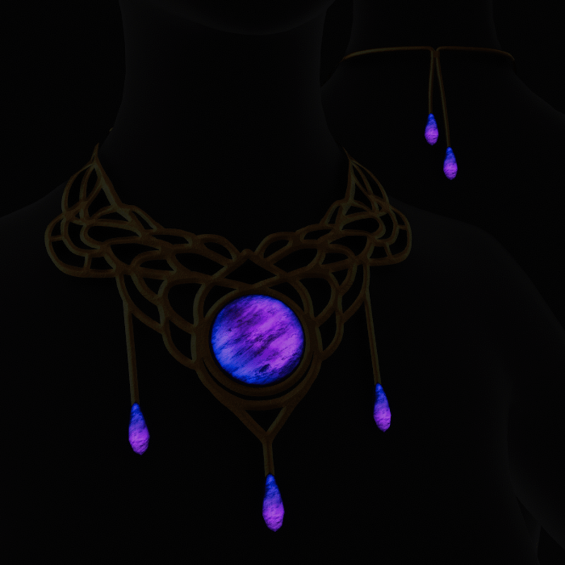 A unique, elegant and luminous neck piece to adorn your avatar with. The crystals on this necklace literally glow. Fitted for the default female framed avatars, however with a small amount of re-sizing and transforming it can fit many kinds of avatars. If you do not see the Necklace immediately in your accessories tab, make sure to set the drop down box at the top to "Show all accessories" (See extra picture for example) Contact "TheNick-1981" through Sansar or Sansar discord if you need re-rigging, a custom design or if there is a problem etc.
