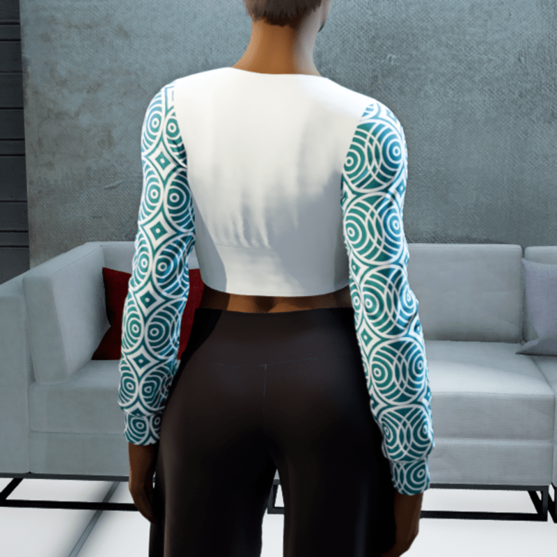 - Cropped V-neck Blouse - White and Teal Circles