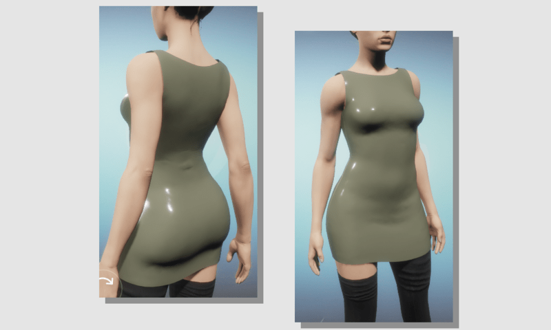 A simple short dress with a shiny (latex like) finish.