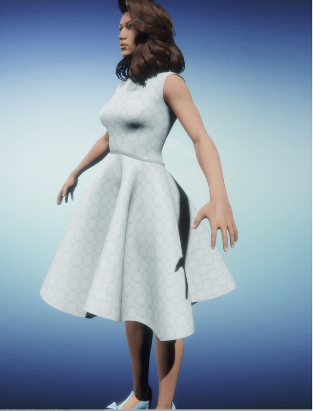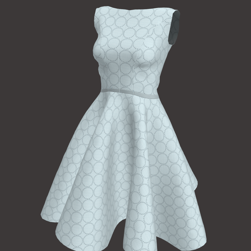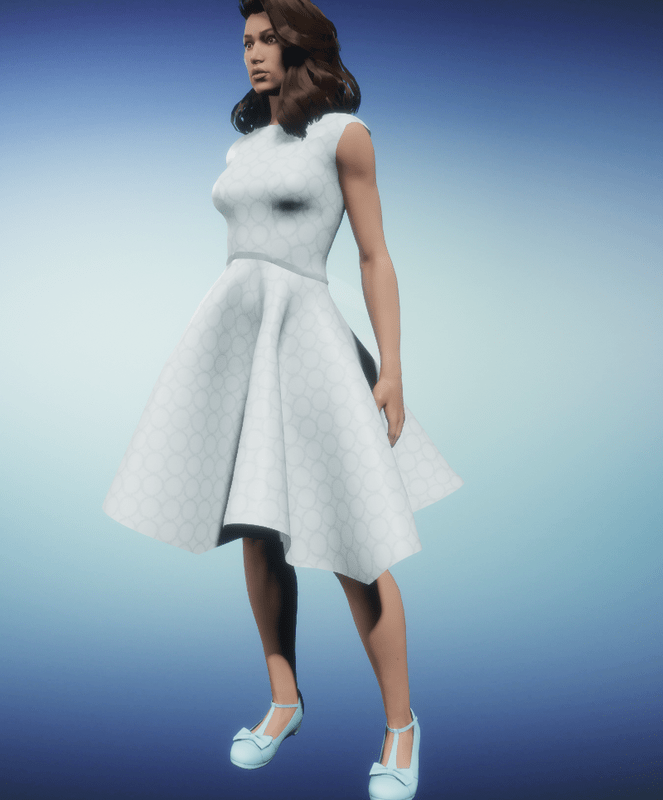 Light blue version of the dress, which has a circle geometric pattern. Please, adjust the garment before using it ingame.