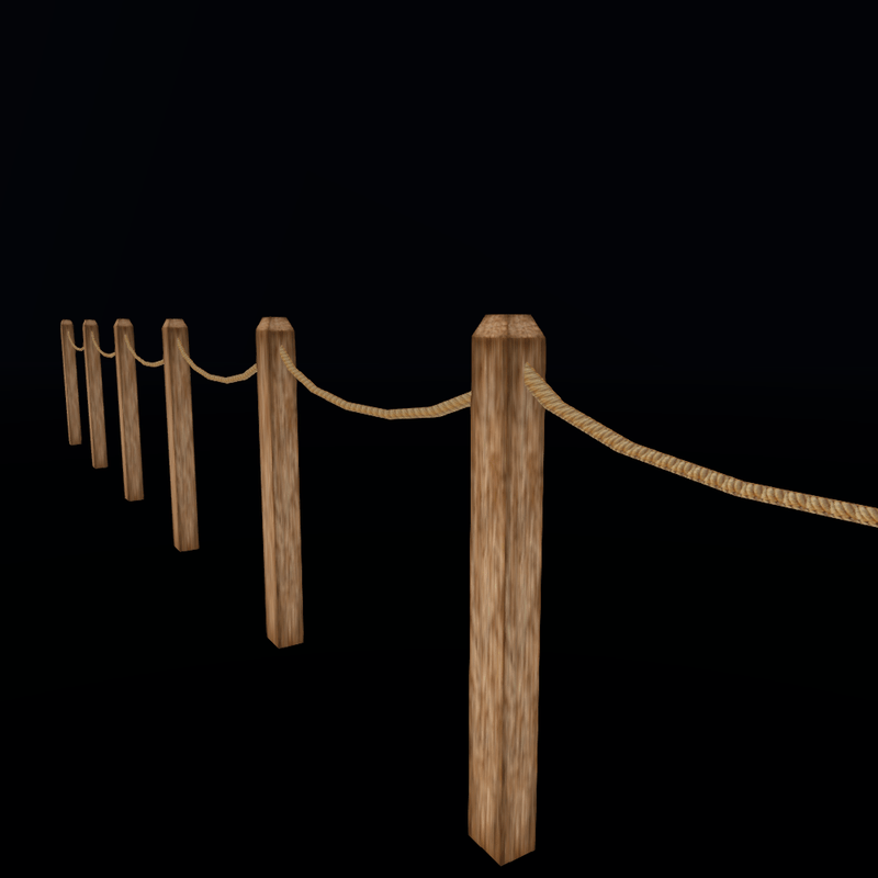 Simple ten rustic posts with rope (original 13 mts.Use is to limit or vorder a path at any rustic or country themed Experience or to set a no traspassing limit,or wherever you consider it suits your needs. Collission I hope you will enjoy it as juch as I did while making it :)