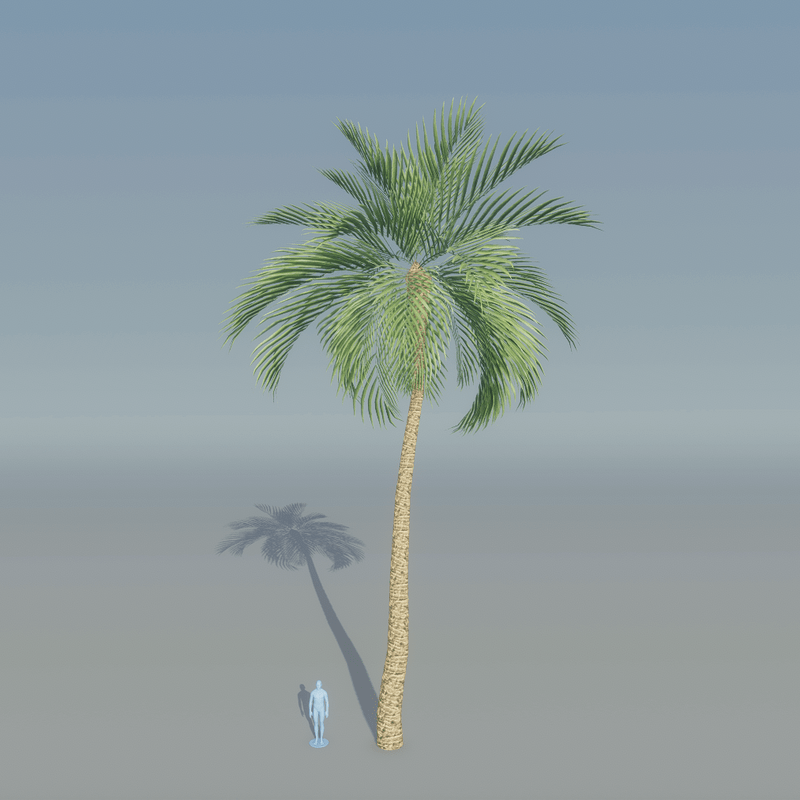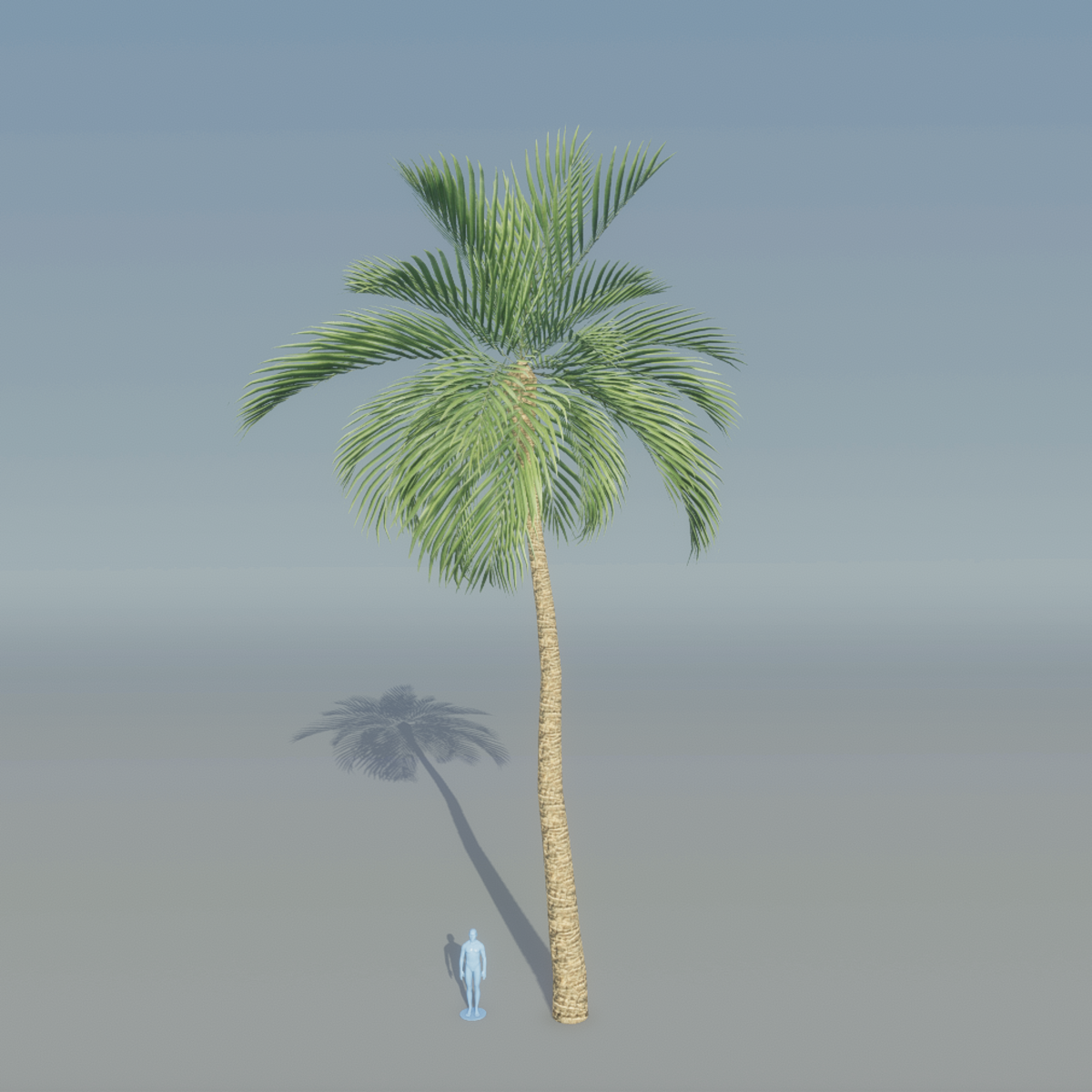 Queen Palm Tree variation 4 2388 Triangles Trunk collision You can see it at The Worlds factory: https://atlas.sansar.com/experiences/lluisindigo/worlds-factory#QueenPalmsSP
