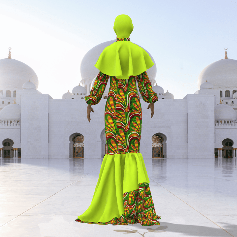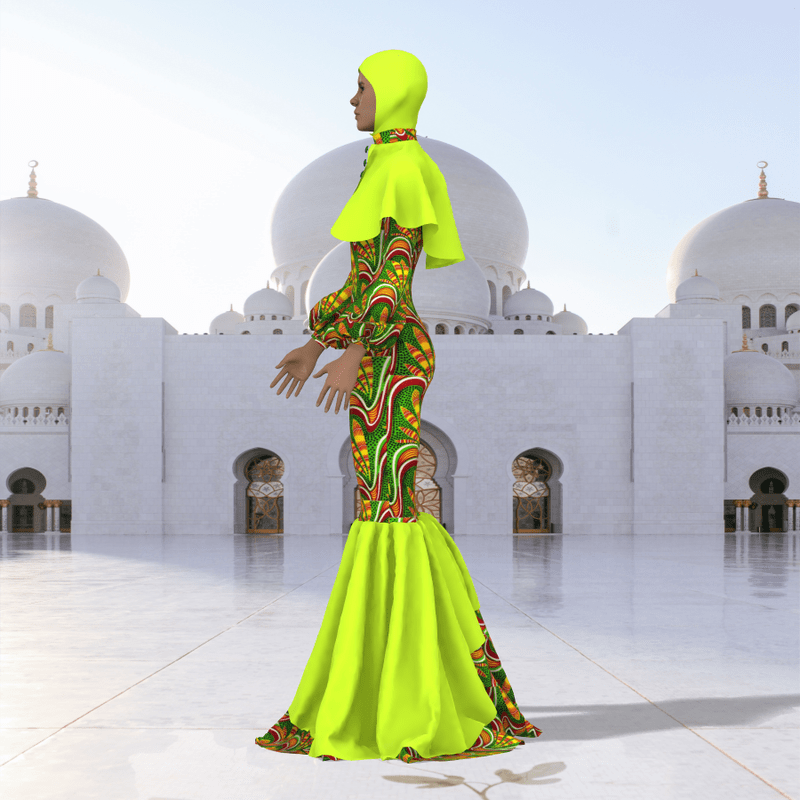 Do you want to celebrate EID on Sansar Here is a Female cloth for EID with African fabric, and a hijab. It is a long flowing gown with nice aesthetics, the cloth may appear with darker shades when stimulated. Made on the default avatar Stimulate and Enjoy EID MUBARAK