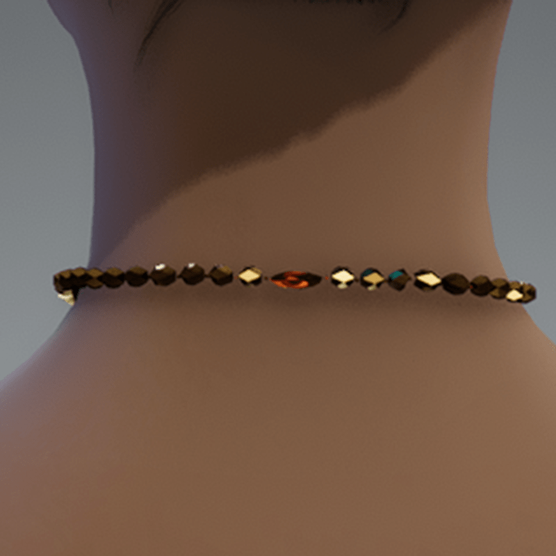 Gold beaded necklace Light green jade beaded necklace Also want to mention that when in Sansar the middle part of the back clasp seams to not appear. Noticed this sometime after posting all of the necklaces online. I can't replace the products unfortunately but plan to create more similar necklace designs in the future without this issue. In the meantime I still think they look pretty good and the clasp issue isn't that noticeable at least in my opinion.