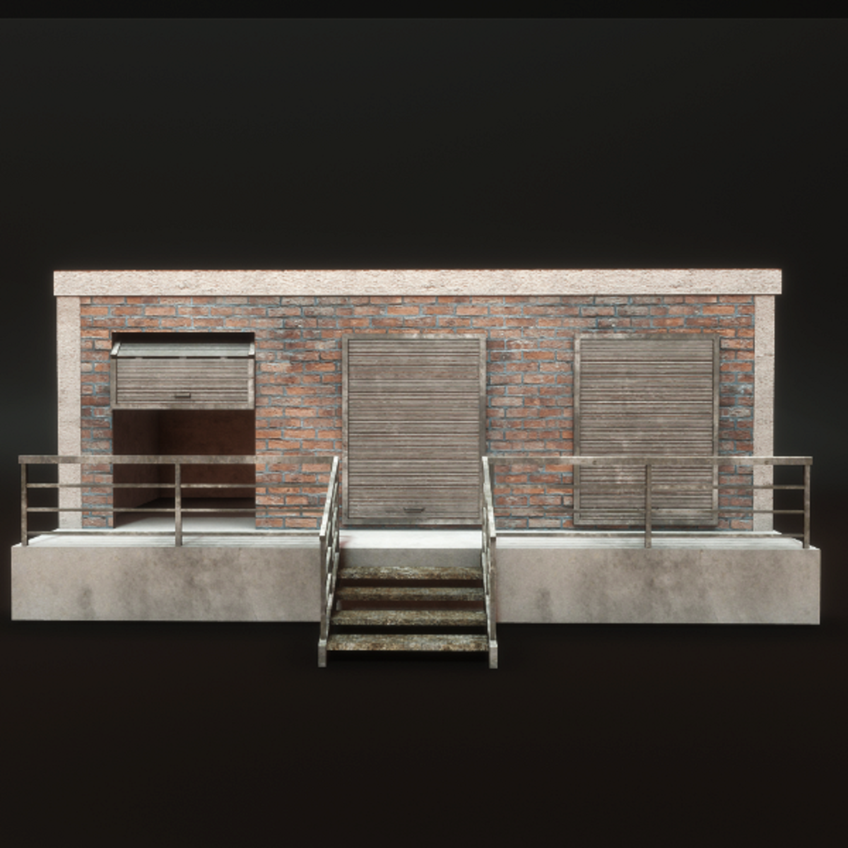 See inworld here: https://atlas.sansar.com/experiences/chicaeon/gray-dawn Original mesh Cycles Baked Textures Normal Map 2622 tris ONE usable area with walk through door. Other doors cannot be scripted. There is a mirror version of this build should you want the opening on the right.