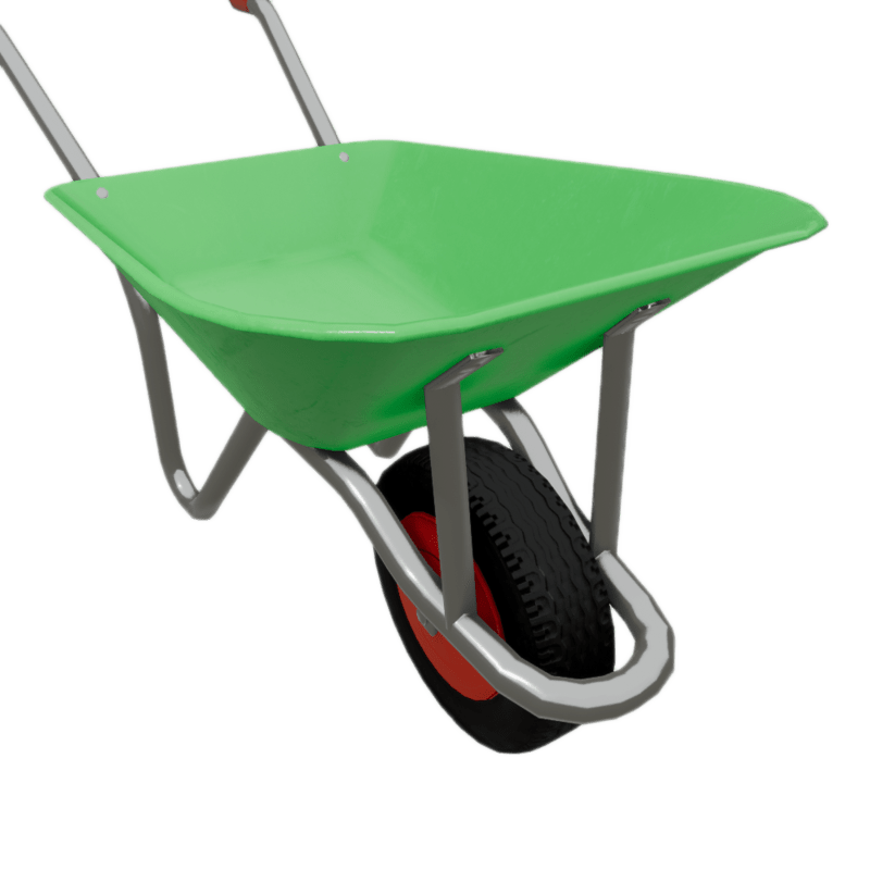 Pristine Wheelbarrow made of metal, plastic and rubber. triangles:3656 (Includes collision mesh and non overlapping x2048 PBR Texturing) The normal map was baked from a high poly model. If you need help with this model or have a question – please do not hesitate to contact with me. I will be happy to help you. Contact: plaggy.net@gmail.com