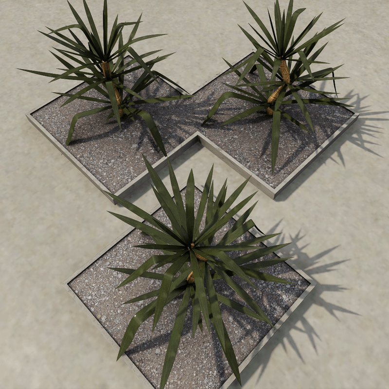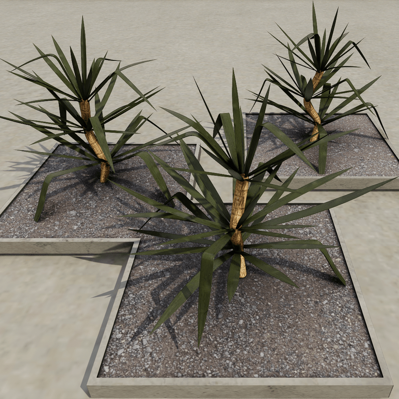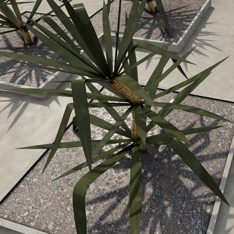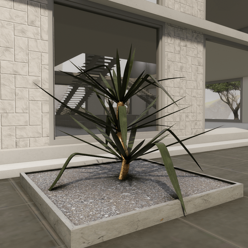 Yucca. Tropical plants in flowerpots. Single and double. 5 objects. Collision mesh. It can be seen here: https://atlas.sansar.com/experiences/jasminaweezles/darma