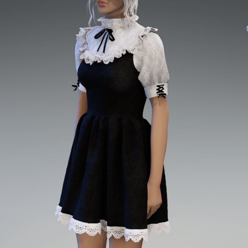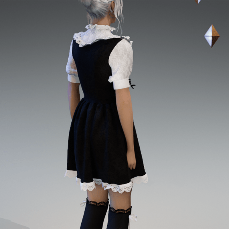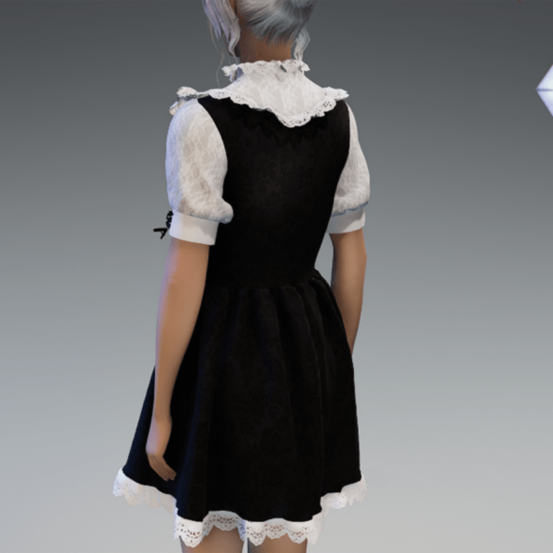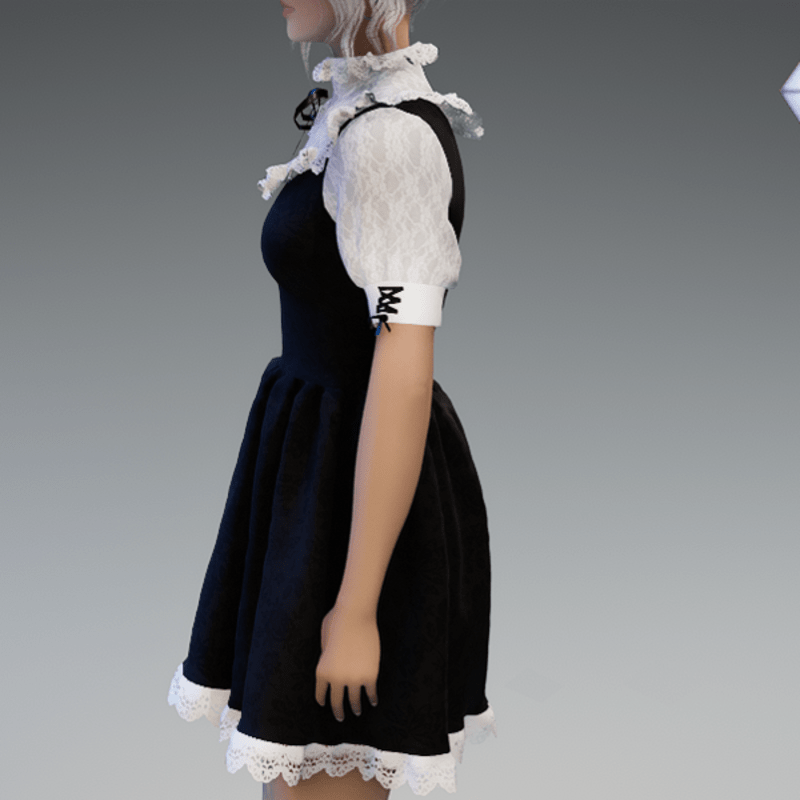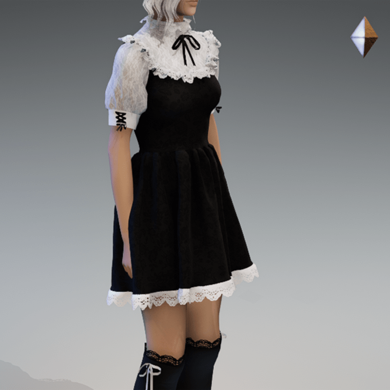This cute lolita dress comes with some lace applications on the top and the bottom as well es a bow on the sides and the front. Enjoy! <3 If you're interested in the stockings, you can find them here: https://store.sansar.com/listings/9d04985f-f0c5-4df5-944a-3b73d5dddc80/black-and-white-lola-stockings