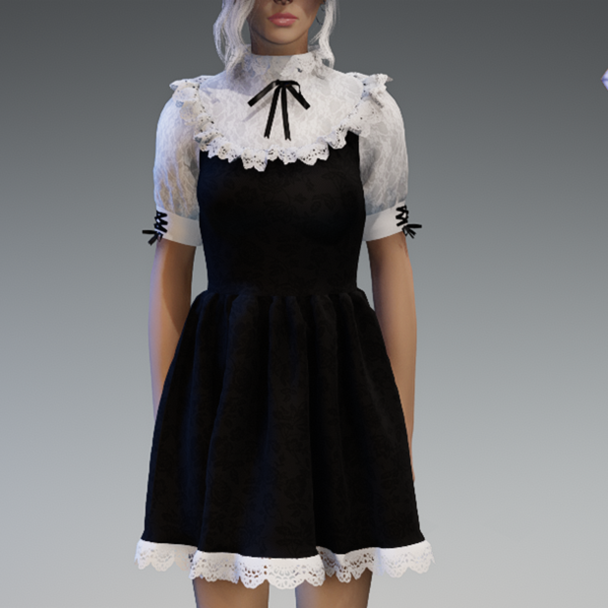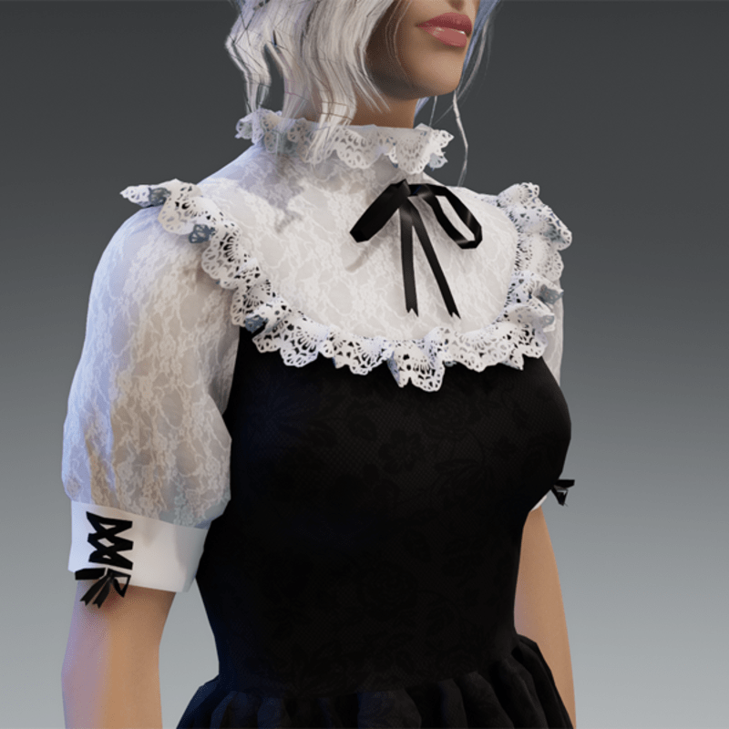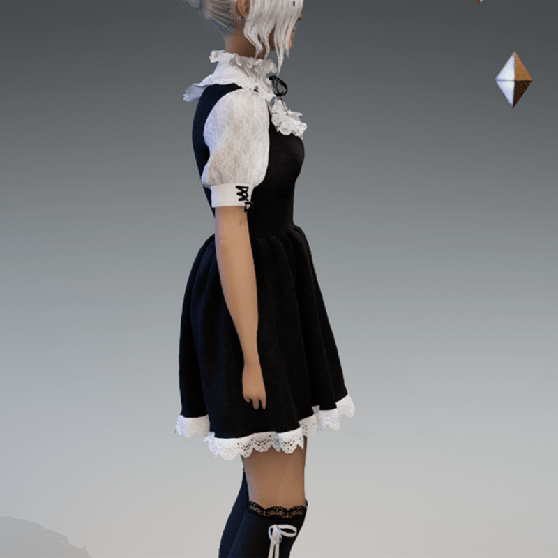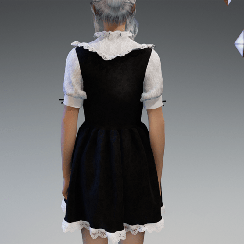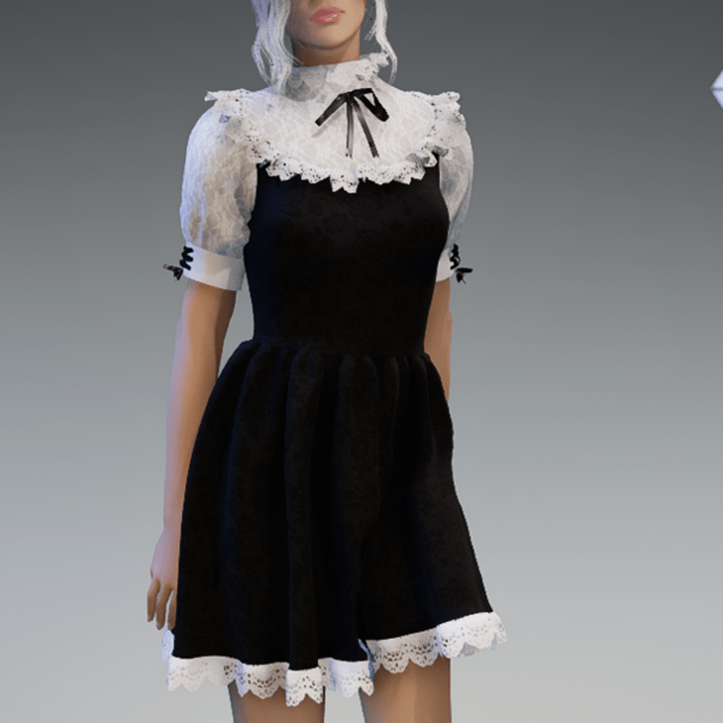 This cute lolita dress comes with some lace applications on the top and the bottom as well es a bow on the sides and the front. Enjoy! <3 If you're interested in the stockings, you can find them here: https://store.sansar.com/listings/9d04985f-f0c5-4df5-944a-3b73d5dddc80/black-and-white-lola-stockings