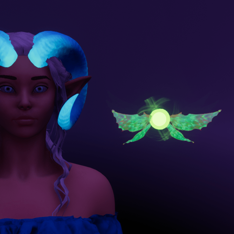 Animated glowing green pixie pet; Worn in the Glasses Slot Animated wings and magic particles, see example gif: https://gyazo.com/b9a5d11e0faab6cf9886413df63e6816 Wearable with other slot variants and FULLY TRANSFORMABLE! Textures hand drawn by NovaVoidSpirit