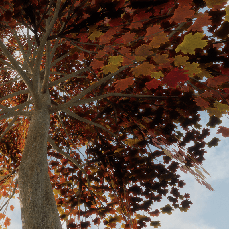 Autumn Maple Tree variation 5 2913 Triangles Trunk collision You can see it at The Worlds factory: https://atlas.sansar.com/experiences/lluisindigo/worlds-factory#Maple_AutumnB