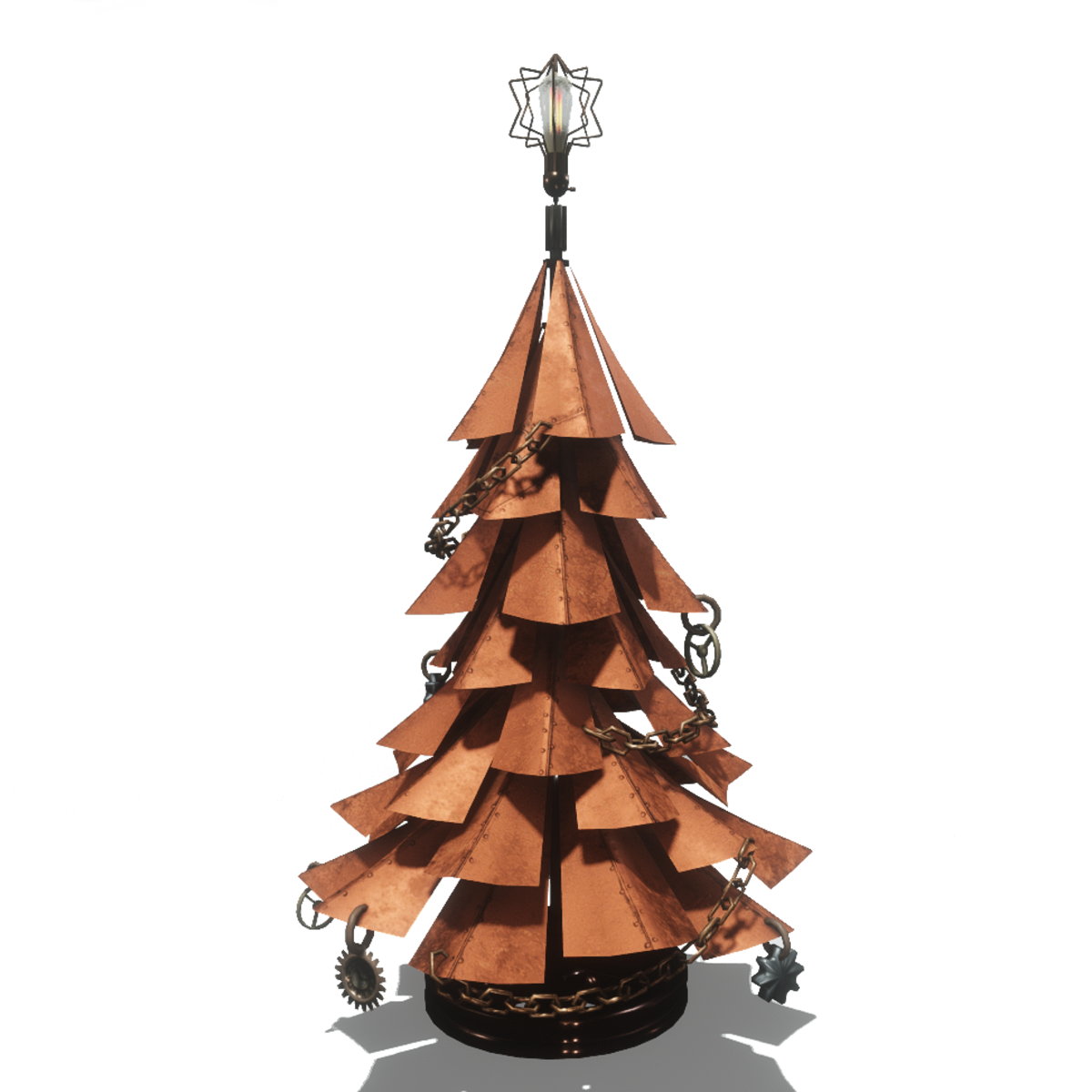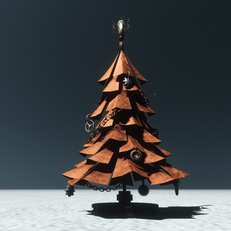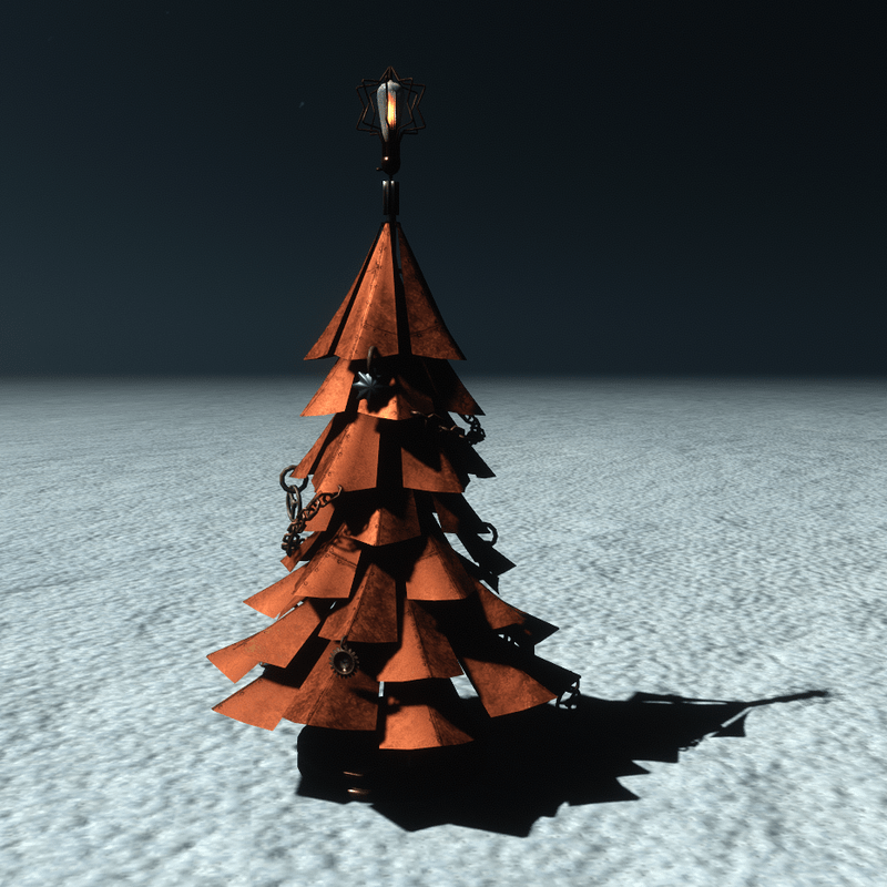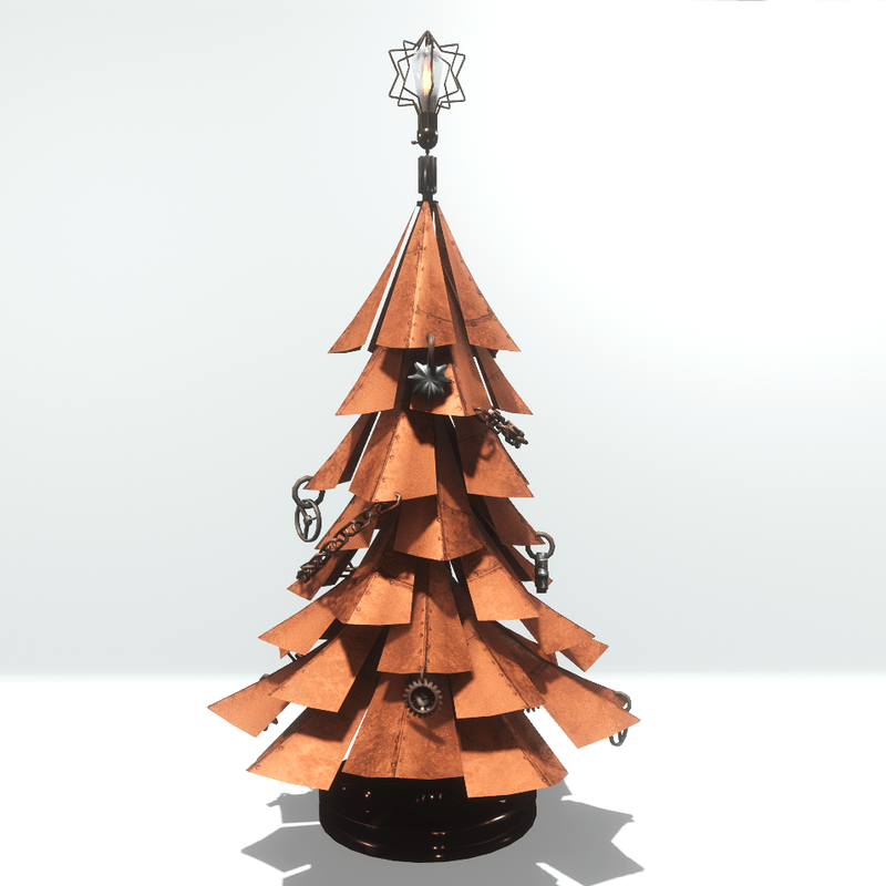 A unique steampunk style christmas tree with metal branches, gears and clocks for ornaments, chains for garlands. At the top it has star-shaped wires and a vintage lamp. The item have editable materials and collision. You can take a closer look here: https://atlas.sansar.com/experiences/luise/terra-di-luci