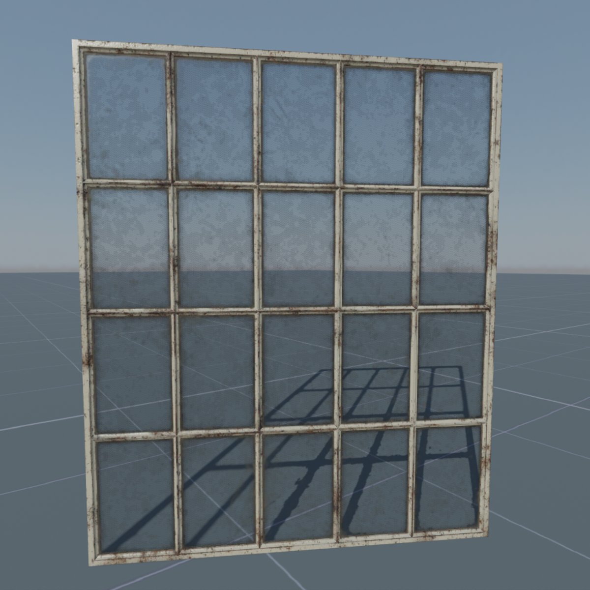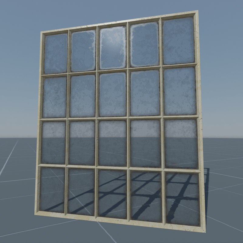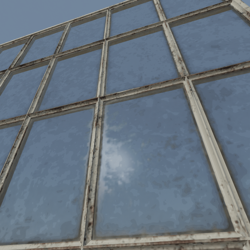 Non-openable shabby and rusty industrial (factory) window. Please also check for other types of this window in the store. NOTE! Use "Scene objects" if you want to remove the mullion. You can also create collision there. Features: - Almost real life dimensions but slightly adjusted for usability - Other textures coming soon (by external URL) - Functionality will be added when it will be possible - For resale (in future) - Free updates Tech specs: - Dimensions (window hole size): 1.6 m width & 1.92 m height - Textures: 1024x1024 albedo+alpha/normal/roughness (metallic set to black) - Texel density: ~400 per meter - Materials: standard for frame & standard+alhpa for glass (both use the same texture set) - Collision: None (will be added when possible with multipart objects) - Triangles: 912 for window + 28 for mullion - LODs: Will be added when possible Other notes: - Recommended brick size (including cement): 0.08 m height & 0.24 m width - The alpha (opacity) is performed as needed but current shader implementation make it looks "discrete". Using of "transmittance shader" will cast black shadows. So... will wait for shader updates keywords: rust, urban, abandoned, weathered, worn, dirty, steel, iron, old, vintage, low poly