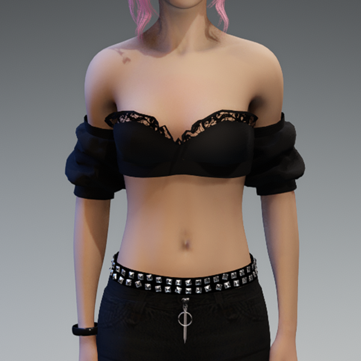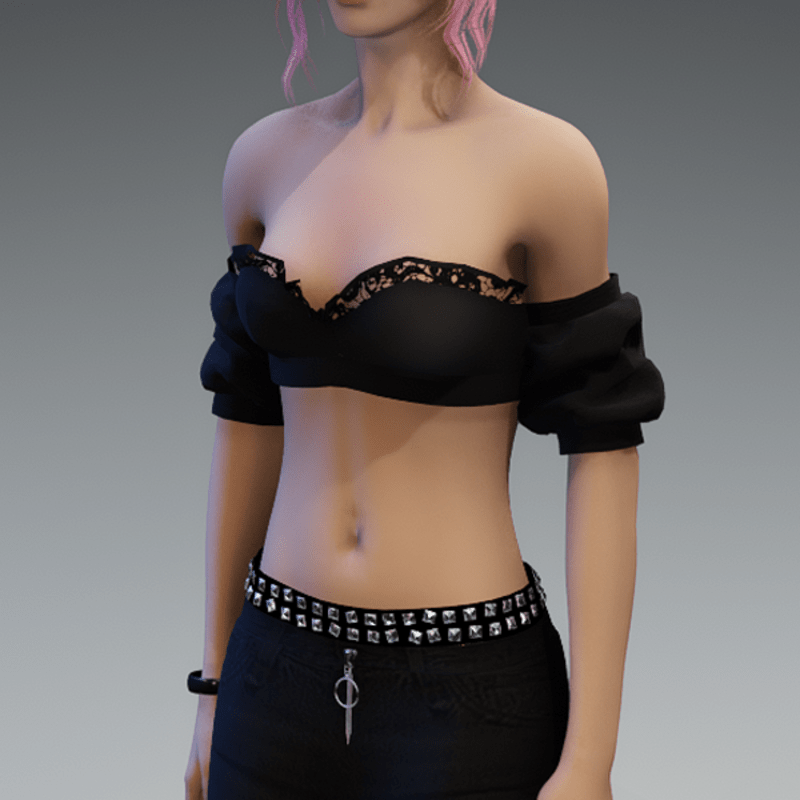 This top comes with some lace applications at the top of the front and a black fabric. If you want to know how this top would look like on your avatar, feel free to use my 'siggys store' version first before buying this one! Enjoy!