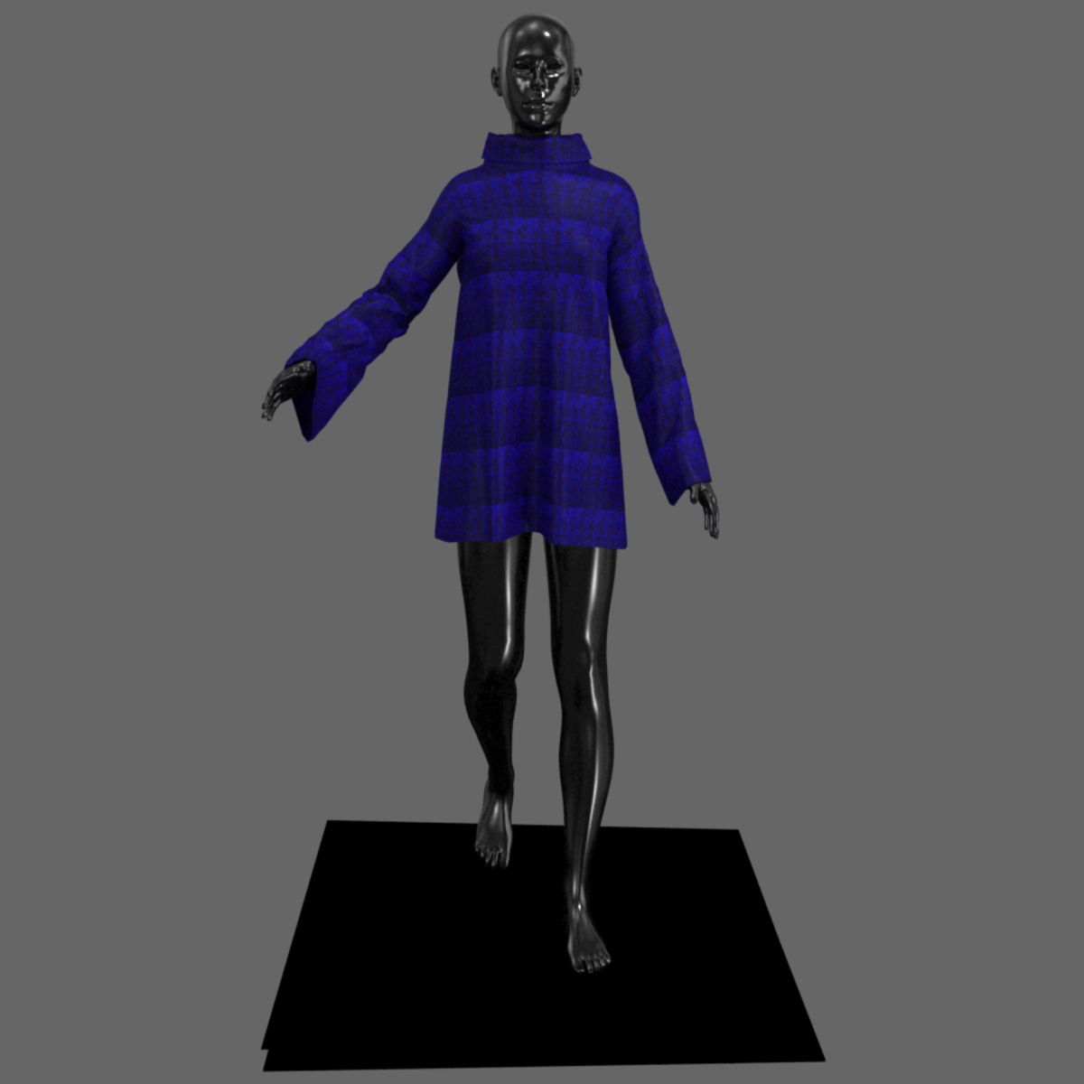 Created on a Default Avatar but the Turtle Neck Short Gown fits on all avatar. The gown is above knee length with flawed sleeves. The Gown is embedded with blue Woven design Stimulate and enjoy.