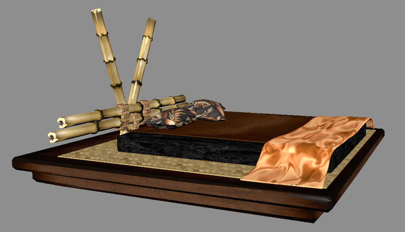 Tribal or asian style for this bed, it includes collision, so you can't walk through it.
