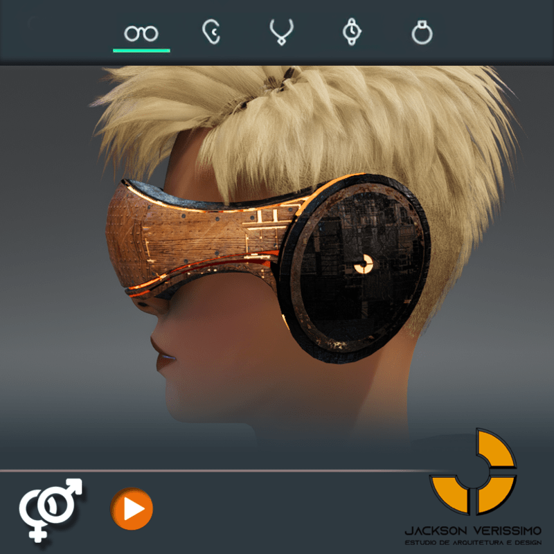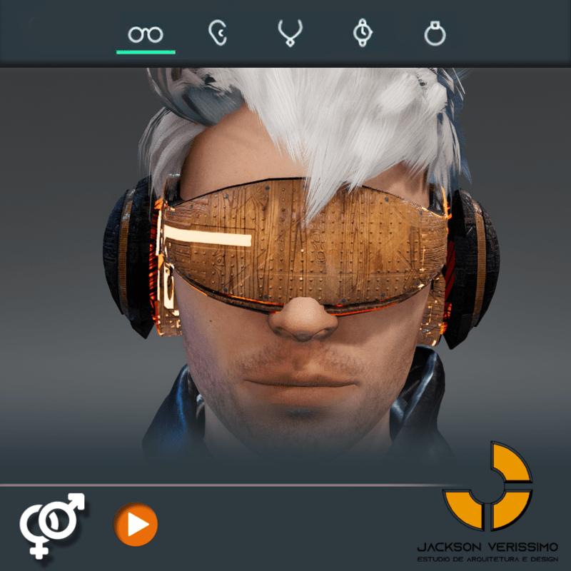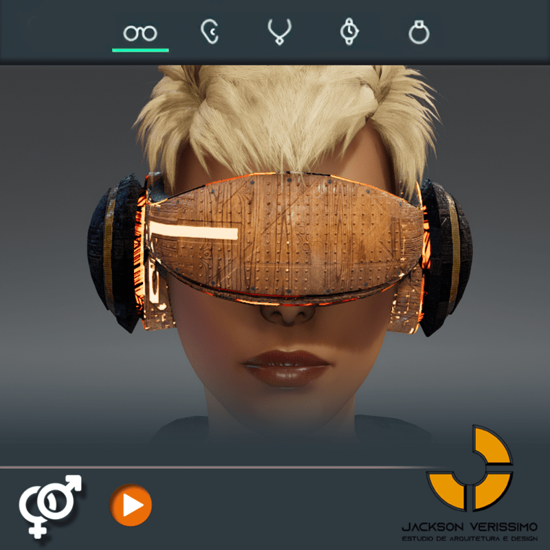 Visionary Design for a VR Headset exclusive for Sansar Metaverse. This Vr Glasses don't mess the Hair of your Avatar. Minimal and Elegant Design. Vr Glasses with HeadPhone. High Resolution PBR Texture and Animated Lights. See the animation: https://gyazo.com/3ce615dc84a58142821ec65445d8fed2 Unisex. Match with all humanoids avatars. No need adjustments for Default 2.0 Avatar of Sansar.