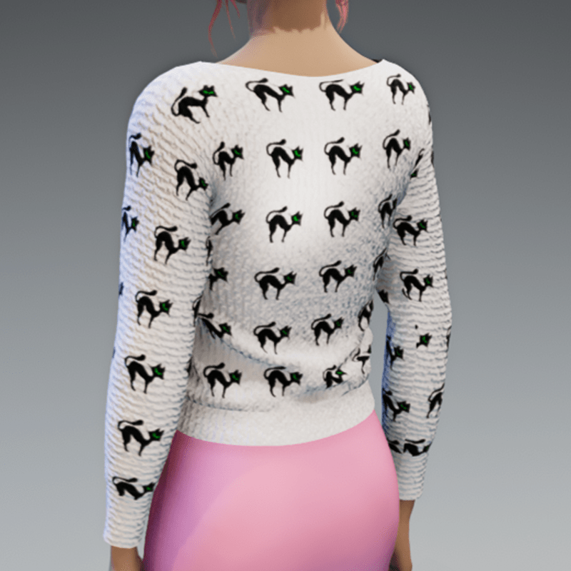 White Pullover with crazy Cats Print knitted