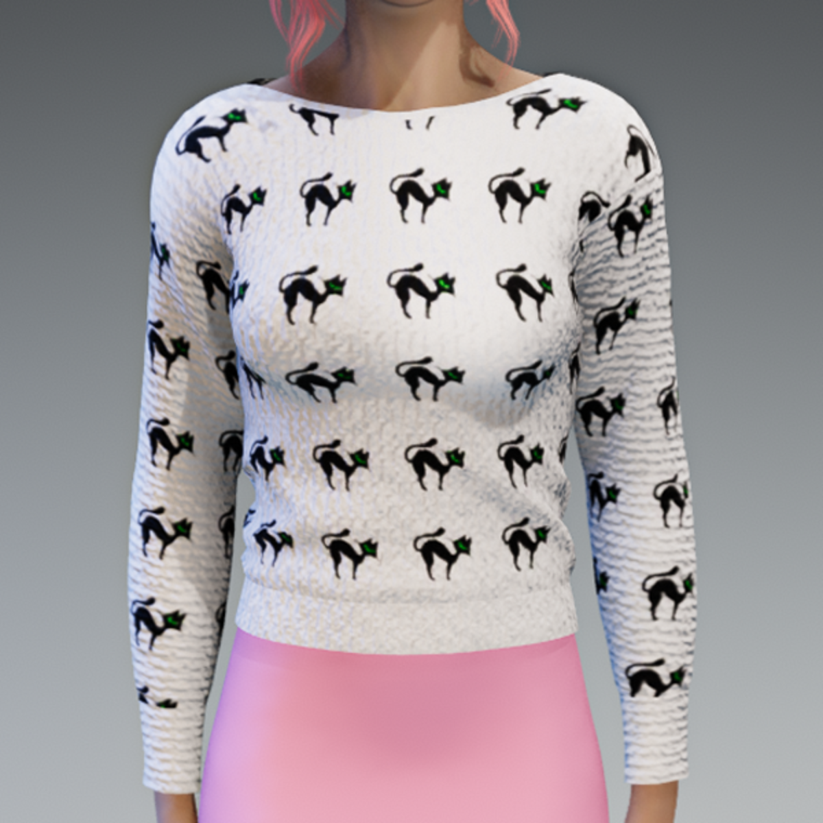 The cute white pullover with the little crazy cats as a knitted one. No matter if for the halloween season or just for fun! Enjoy!