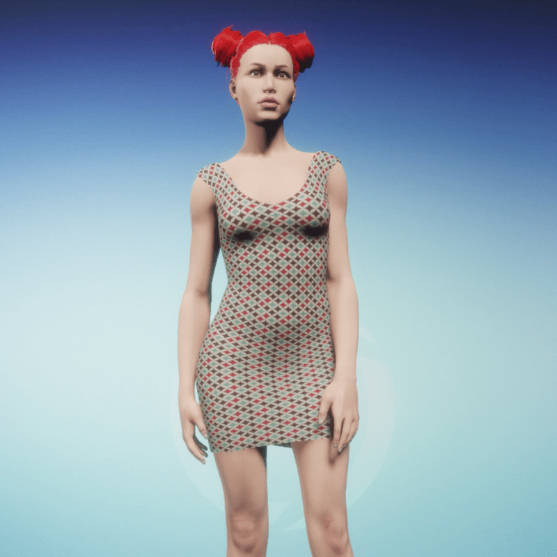 Woman Simple Dress with a retro pattern. Made with marvelous designer.