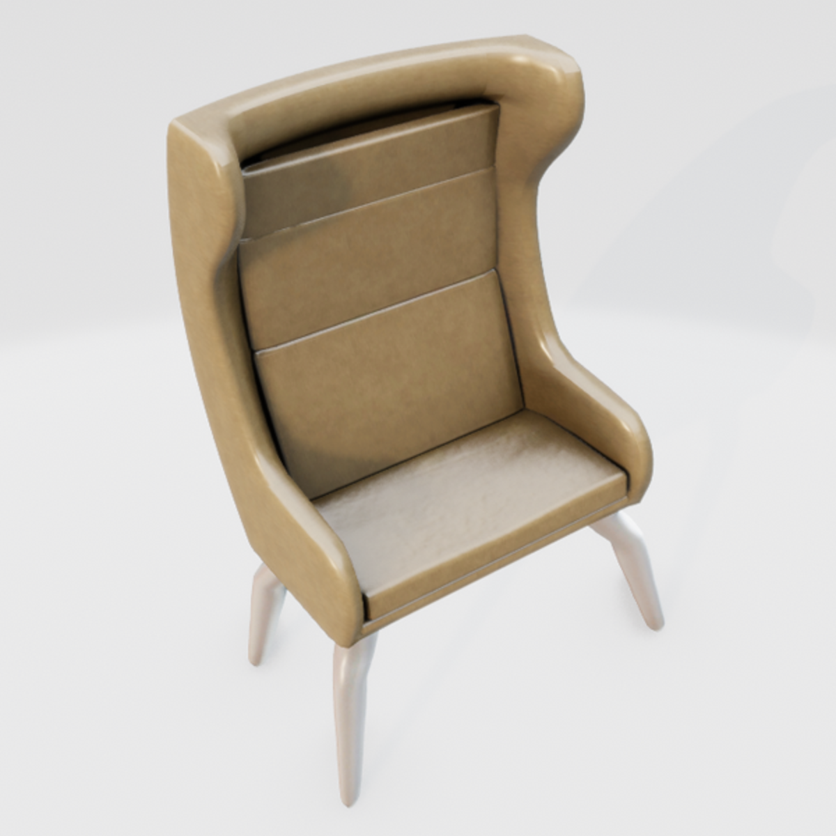 Modern Wingback Chair Beige IMPORTANT NOTICE: This product photo was taken directly in Sansar with Bright Clouds Skybox windlight settings. Using other windlights may alter the product's color as the leather material reflexes the light source's color.