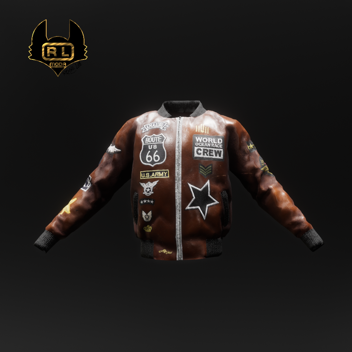 R.L.BOMBER ARMY BRWON LEATHER JACKET ZIP- OPEN / CLOSED YOU CAN ALSO SEE EVERY ITEM IN 3D, IN THE ROYAL LAB SANSAR STORE https://atlas.sansar.com/experiences/alfy/royal-lab THE ROYAL LAB SANSAR, IS A VIRTUAL STORE, AS WE HAVE WORKED IN THE TEXTILE FIELD FOR MANY YEARS, WE HAVE DECIDED TO CREATE A VIRTUAL STORE ALL DEDICATED TO SANSAR, WITH ITEMS TO BE TESTED FOR FUTURE SALES IN REALIFE