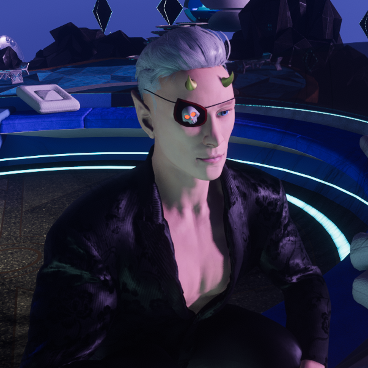 - Skull Eye Patch Gray / Black /Ox Blood (Glow Red) (Male Exclusive Color)