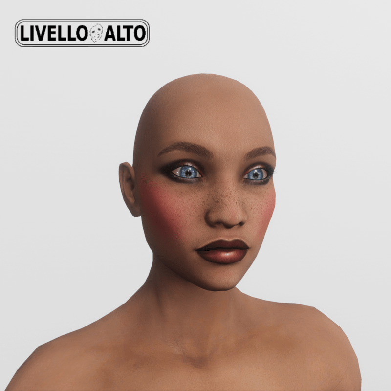 Livello Alto Brand & Co. Present the 'Tippy Toe' Avatar for Livello Alto High Heels. Livello Alto Nicci Avatar - Dark Skin Series with Blue Eyes and Pink Shimmer Makeup. View this avatar at Livello Alto Store in-world https://atlas.sansar.com/experiences/alfy/livello-alto-welcome-area