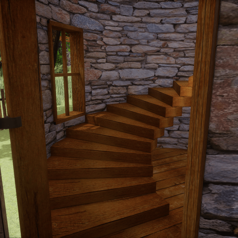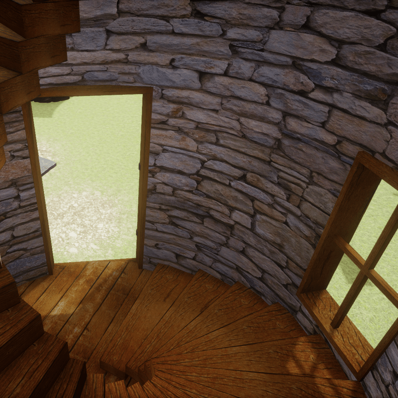 A custom made tower with spiral stairs and two levels. This model is fully textured and has been updated with the correct roughness maps. FBX file with collision
