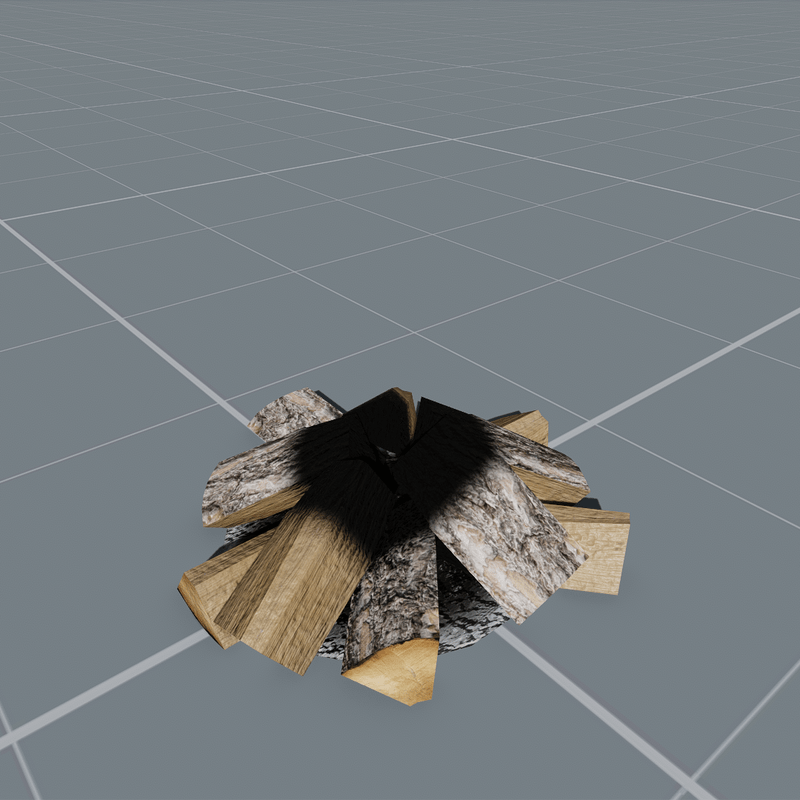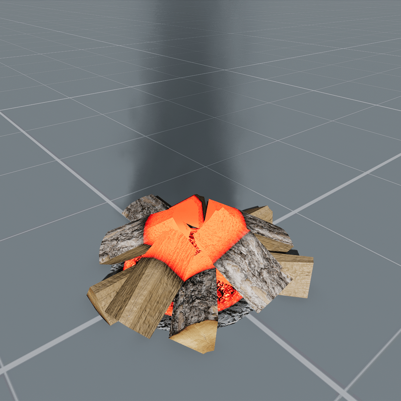 Interactive campfire with 3 stages of animated effects and sound. Drop something on it and the fire will burn for 9 minutes. Then you can drop something again to keep it burning or let it die in a minute. Click it while the fire is off to get logs from the dispenser script. PBR baked materials. Collision. Editable. 89.4 MB, 1.5k tris. Known bugs: Black smoke doesn't go off when resuming the fire on the go. Fix: Select the item "Grey Smoke Loop" from the scene objects list. Select the visibility script from the structure tool. Find the "Hide" field in the properties tool. Add the instruction "on" separated with a comma in that field like this: fire_off,on