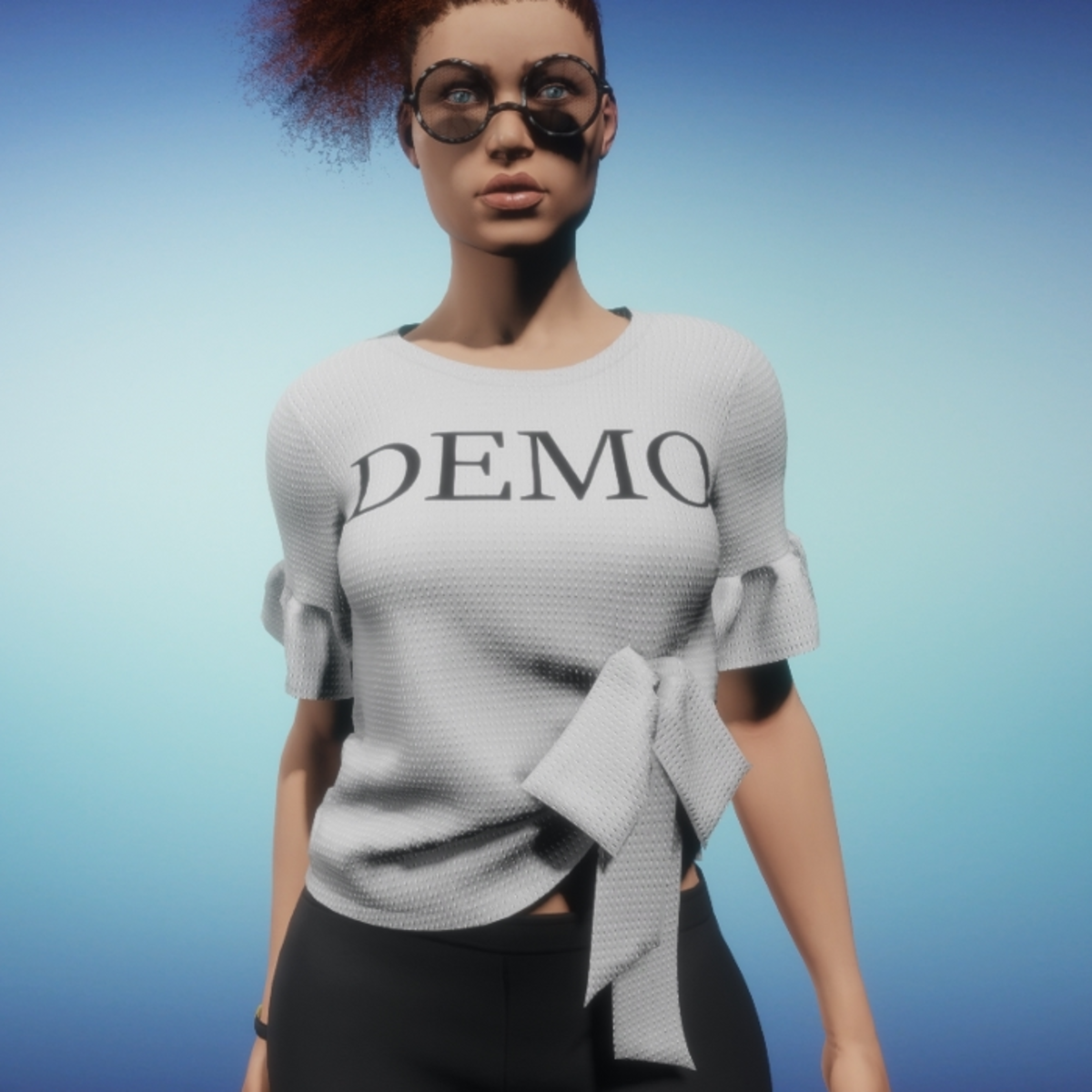 Ladies waffle knit top with bow accent and short sleeves with ruffle. Please be sure to hit the adjust button in the lookbook when wearing any clothing made in Marvelous Designer. This much improves the fit as well as gives you the chance to push the fabric around to your liking. You can adjust individual pieces, which helps adjusting a top to fit over a skirt or pants, by right clicking on the clothing item in the menu and selecting adjust from the drop down menu provided. It is advised to not wear hair until you have completed the simulate process.