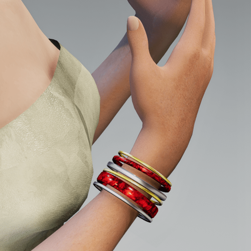 Holiday bangles. Right arm accessory and can be resized and moved some as needed using the TRANSFORM tool.