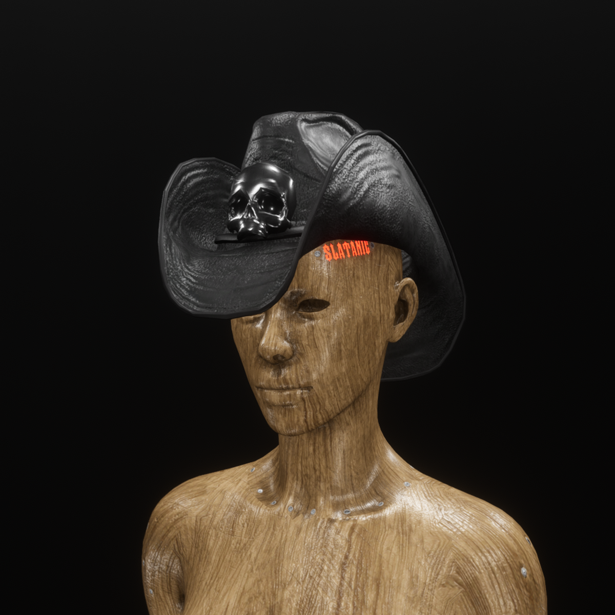 Cowboy hat in outlaw black, worn as attachment can be easily resized to fit avatar