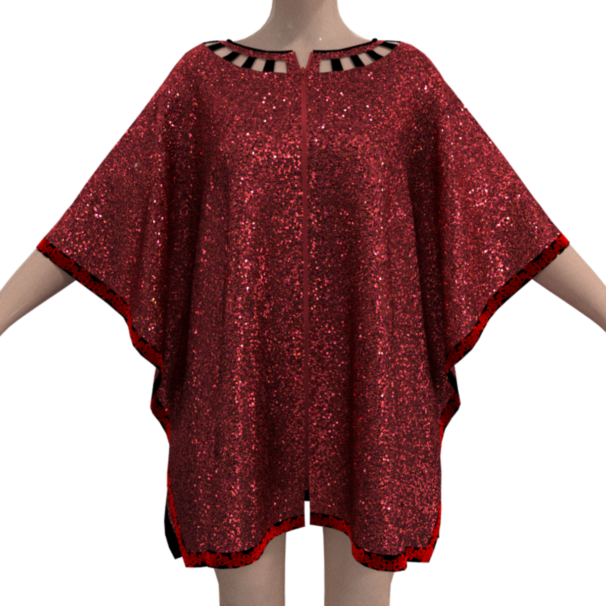 Red Glitter Poncho With Lace